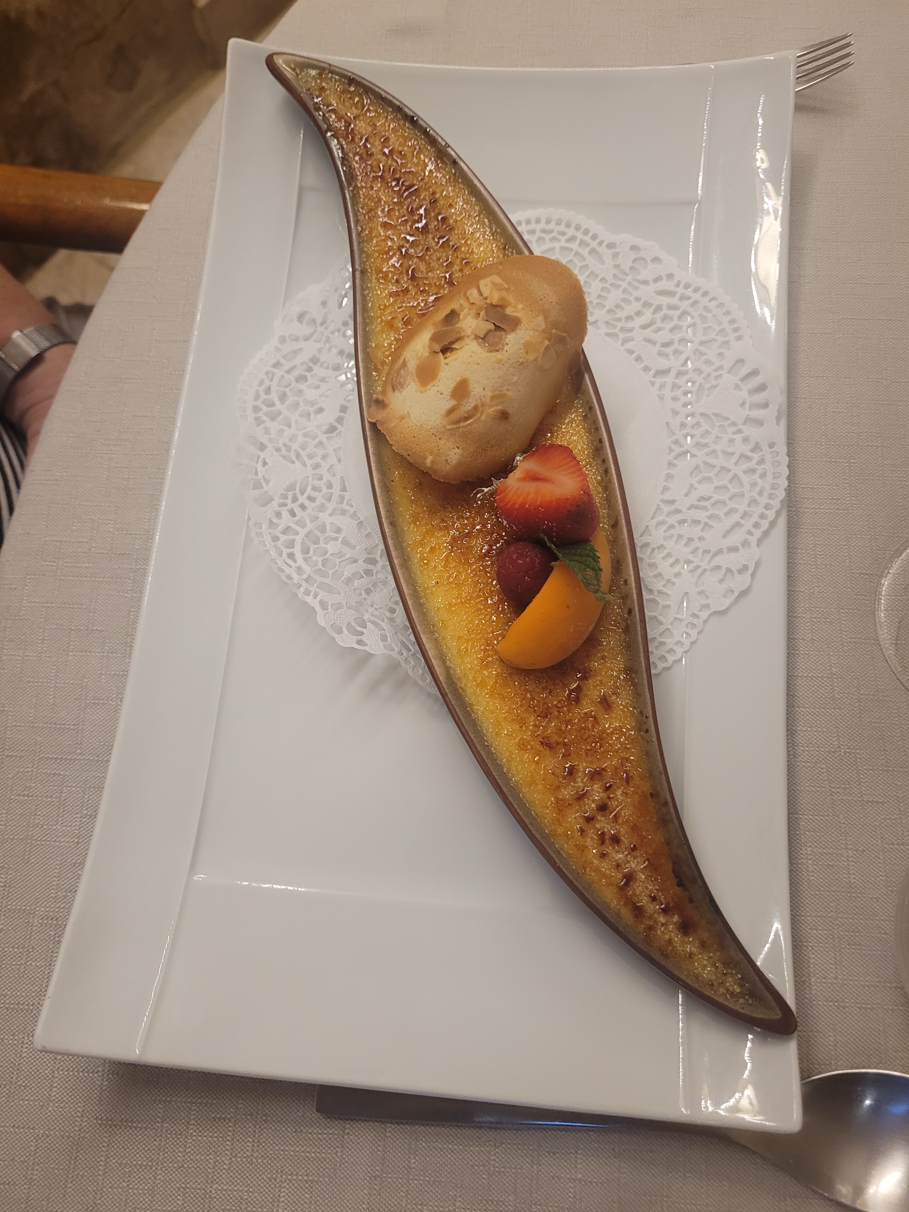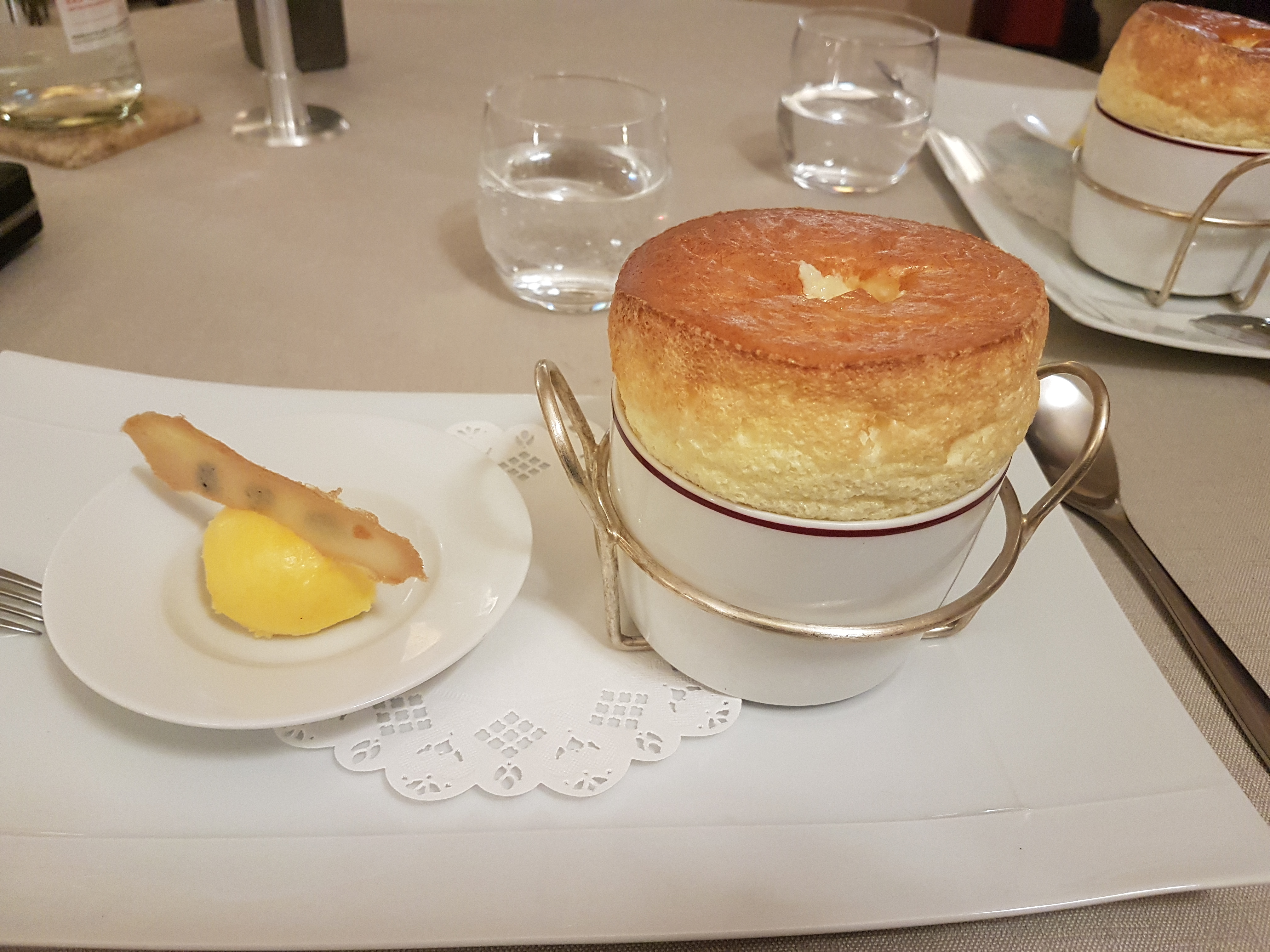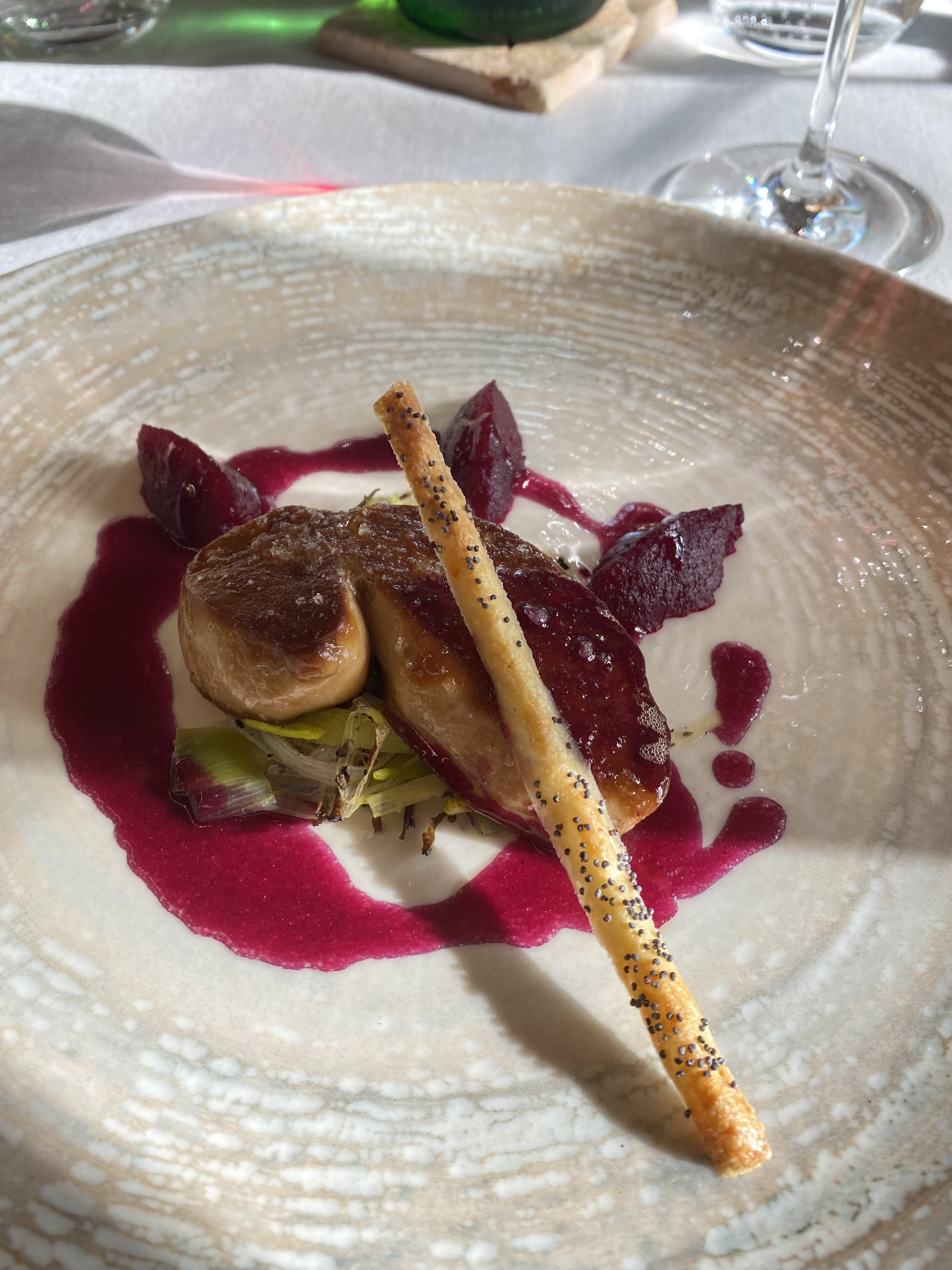 Moment très agréable, cuisine raffinée et cadre sublime. Mention particulière pour le sorbet de betterave qui accompagnait le foie gras. Ainsi que le soufflet Grand Marnier, traditionnel mais toujours aussi agréable. Une excellente adresse gastronomique