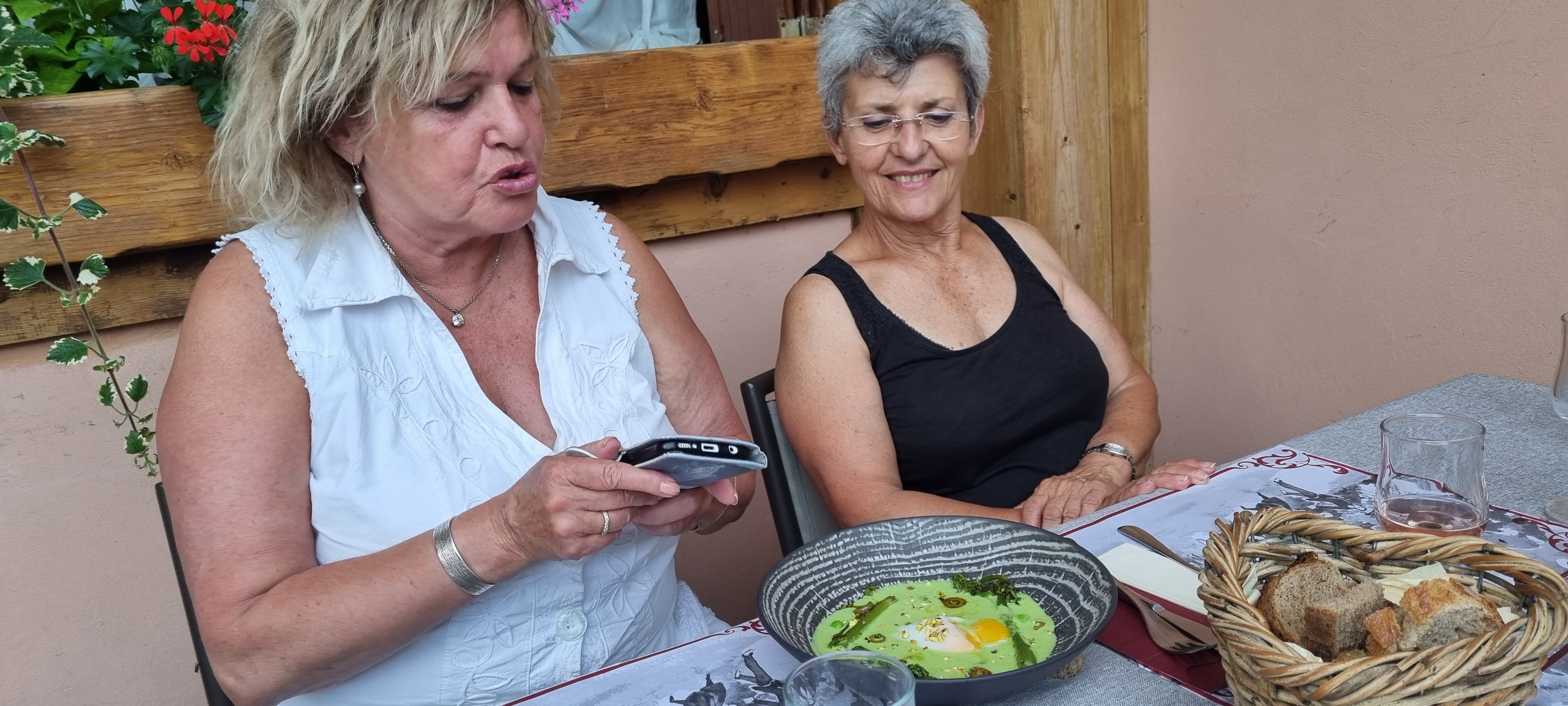 Repas en terrasse ombragée, de nombreux choix de plats dans L'excellence. Cuisine mijotée avec amour, alliée aux herbes des montagnes qui apportent des saveurs sublimes.