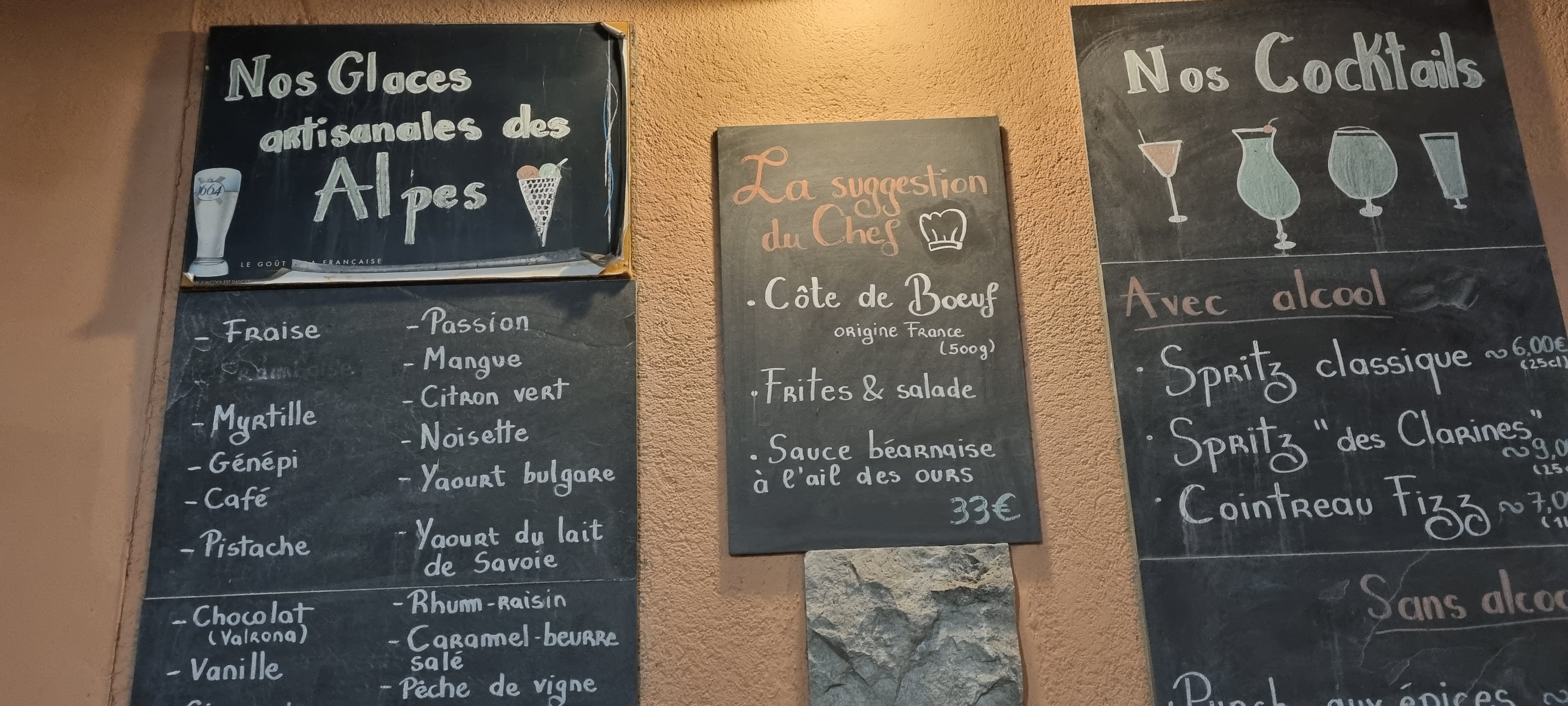 Si vous cherchez ou aller, dirigez vous ailleurs. Accueil plus que déplorable pour 6 minutes de retard sur une table réservée à 20h30, avec aucune annonce lors de la réservation téléphonique quant à la fin de l’accueil des clients à 20h30. Pas de place sur le parking, d’où les 6 minutes de retard… On nous agresse directement pour nous le faire comprendre, sans un bonsoir, ni rien. Tout cela, pour manger en 2h, donc aucun intérêt aux réflexions faites. Et quand on le fait savoir à la gérante de cet établissement, plutôt que d’écouter et expliquer son mécontentement, elle continue de manquer de respect à ses clients, tout en leur coupant la parole, et en leur parlant d’une manière qui n’est pas correcte. Cependant, très bon service de la part de Sofiane, et super cuisine. En bref, dommage de perdre des personnes des Bauges, qui eux sont succeptibles de revenir et ainsi, vous procurer une bonne pub… à la place de sourire deux fois, et être aimable. L’amabilité est à revoir, et le respect également. Belle soirée à vous.