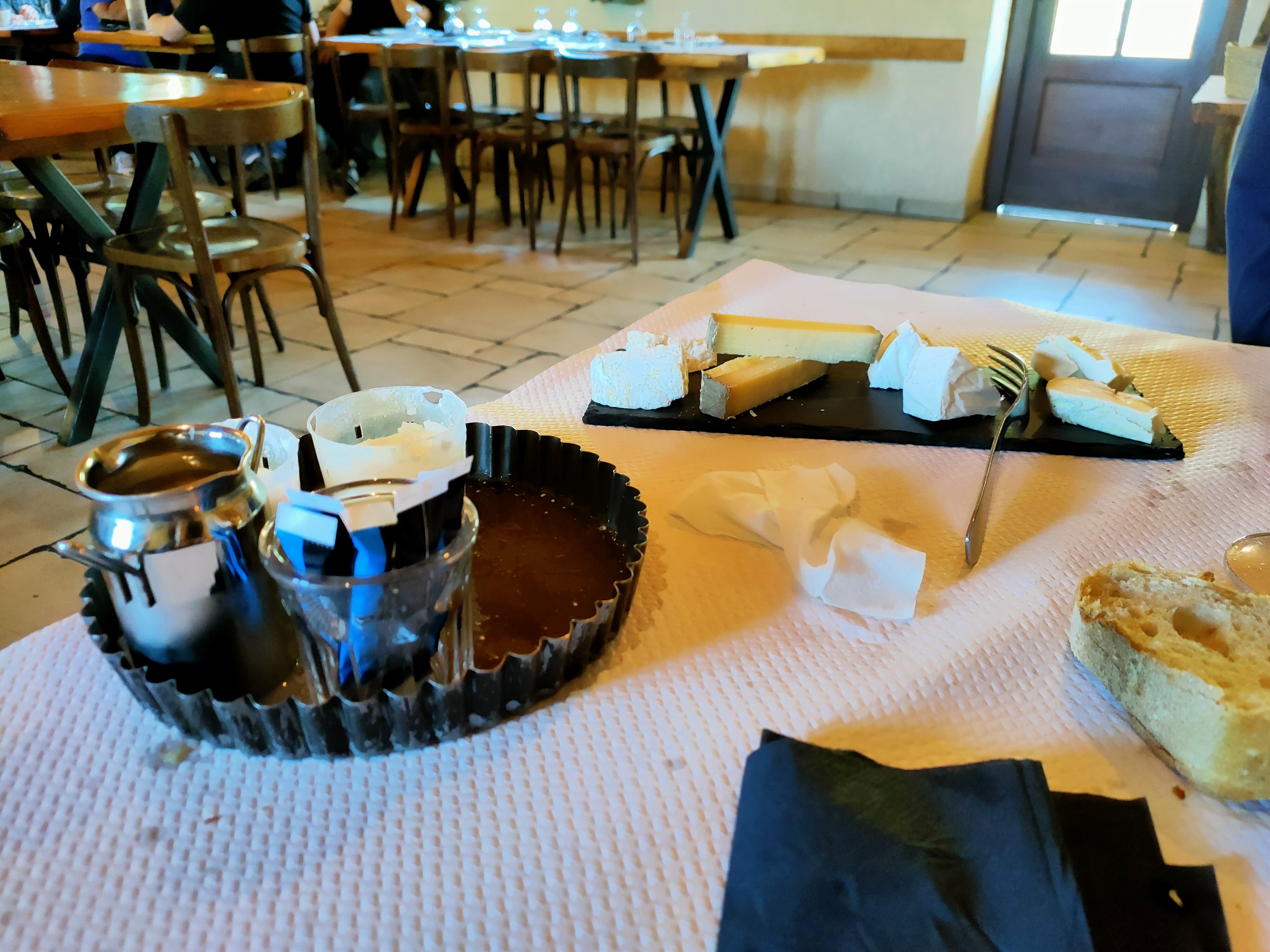 Un bon plat de charcuterie, de bonnes rappèes en salade, un grand plateau de fromage blanc et sec et un cuvè du patron rouge ou rosé au top. Quoi de mieux ! Un rapport qualité prix au top ! Pensez à réserver 😉