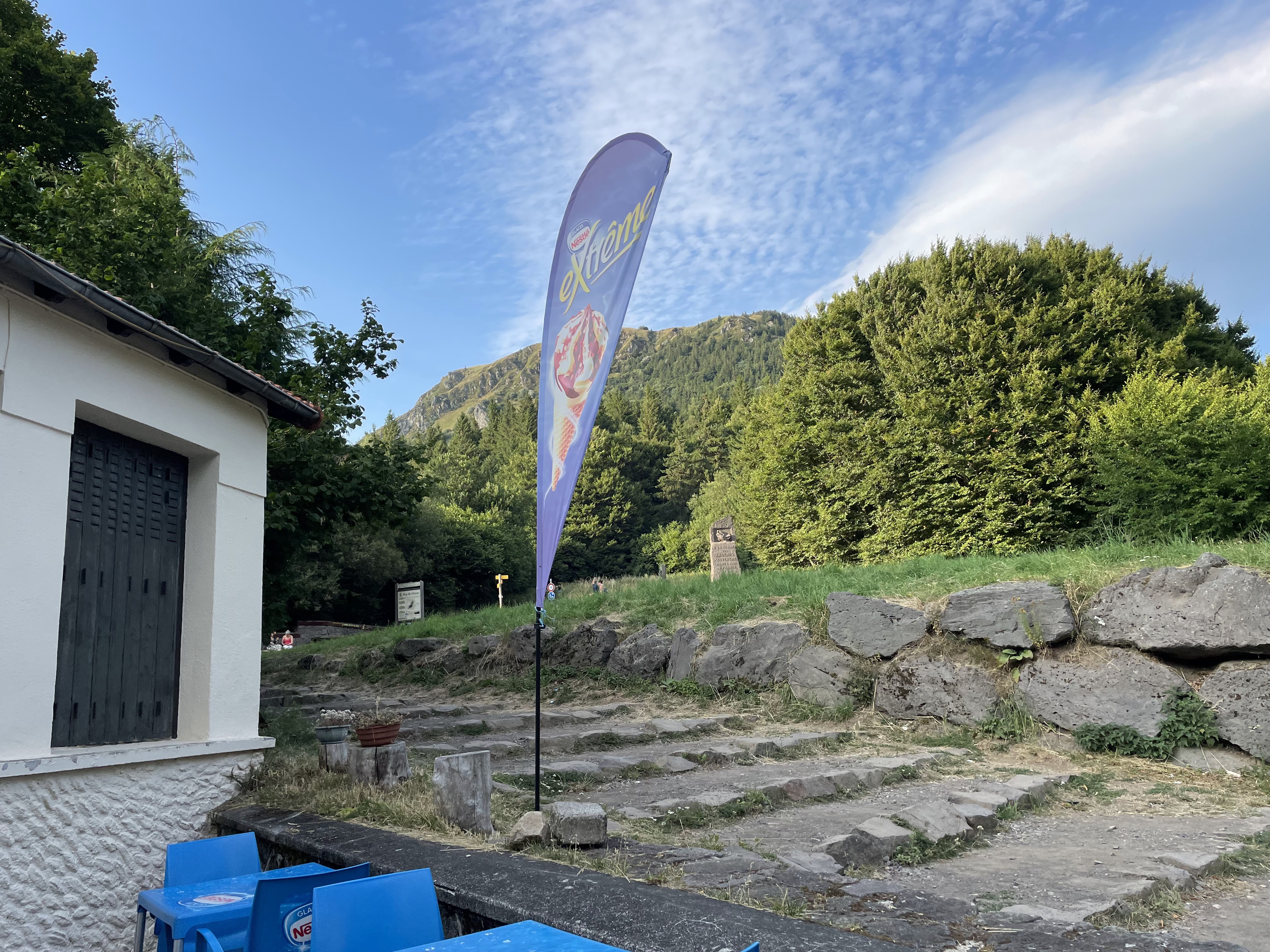 Consos prises après le redescente du Puy de Dôme, cadre sympa avec grande terrasse. Nous prenons des glaces pour les enfants et l'un d'entre eux la fait tomber par terre. La serveuse ne se pose même pas la question et nous en ramène une sans que l'on lui demande quoi que soit... Leur gentillesse suffit à dire qu'il faut s'y arrêter...