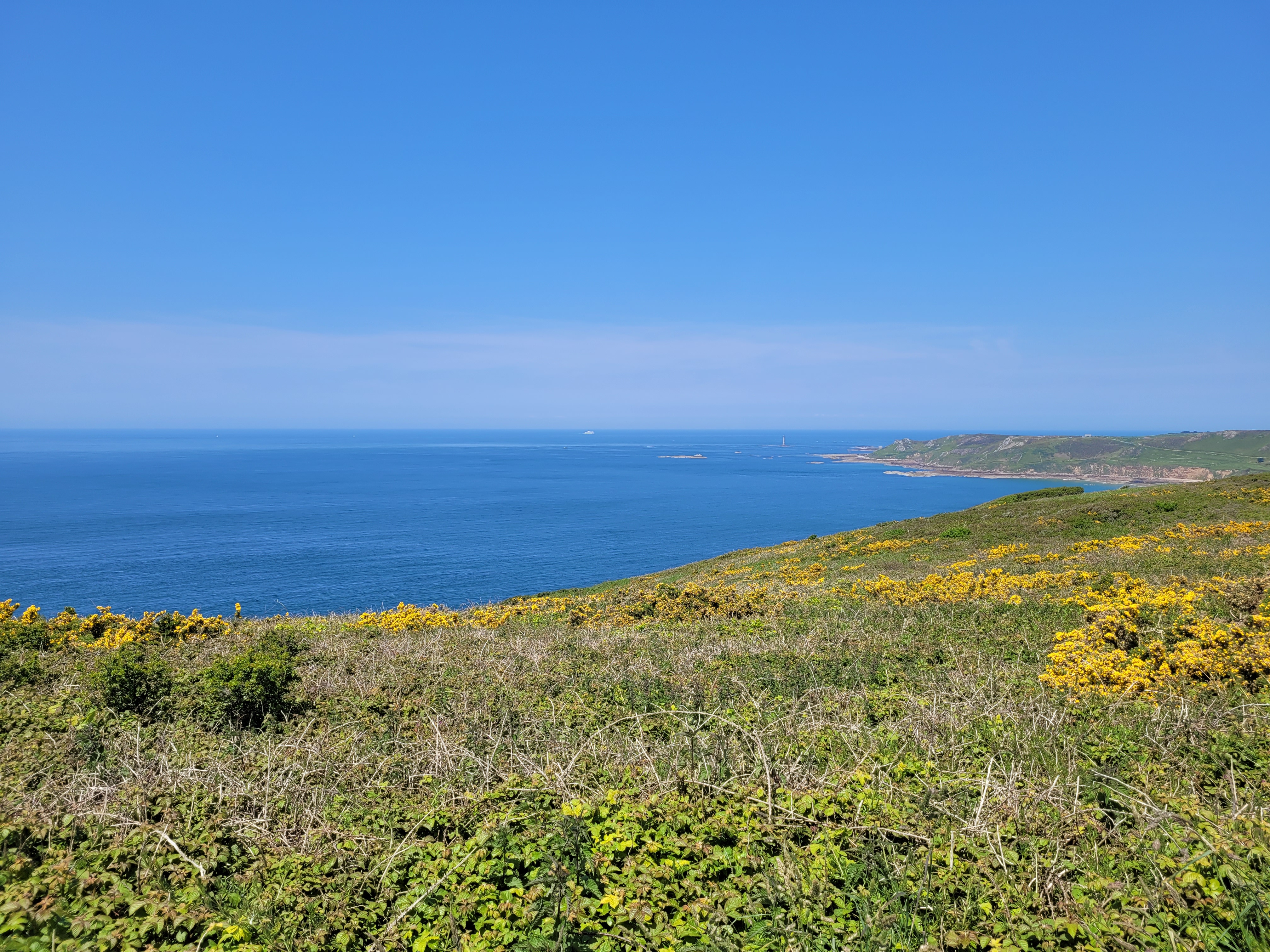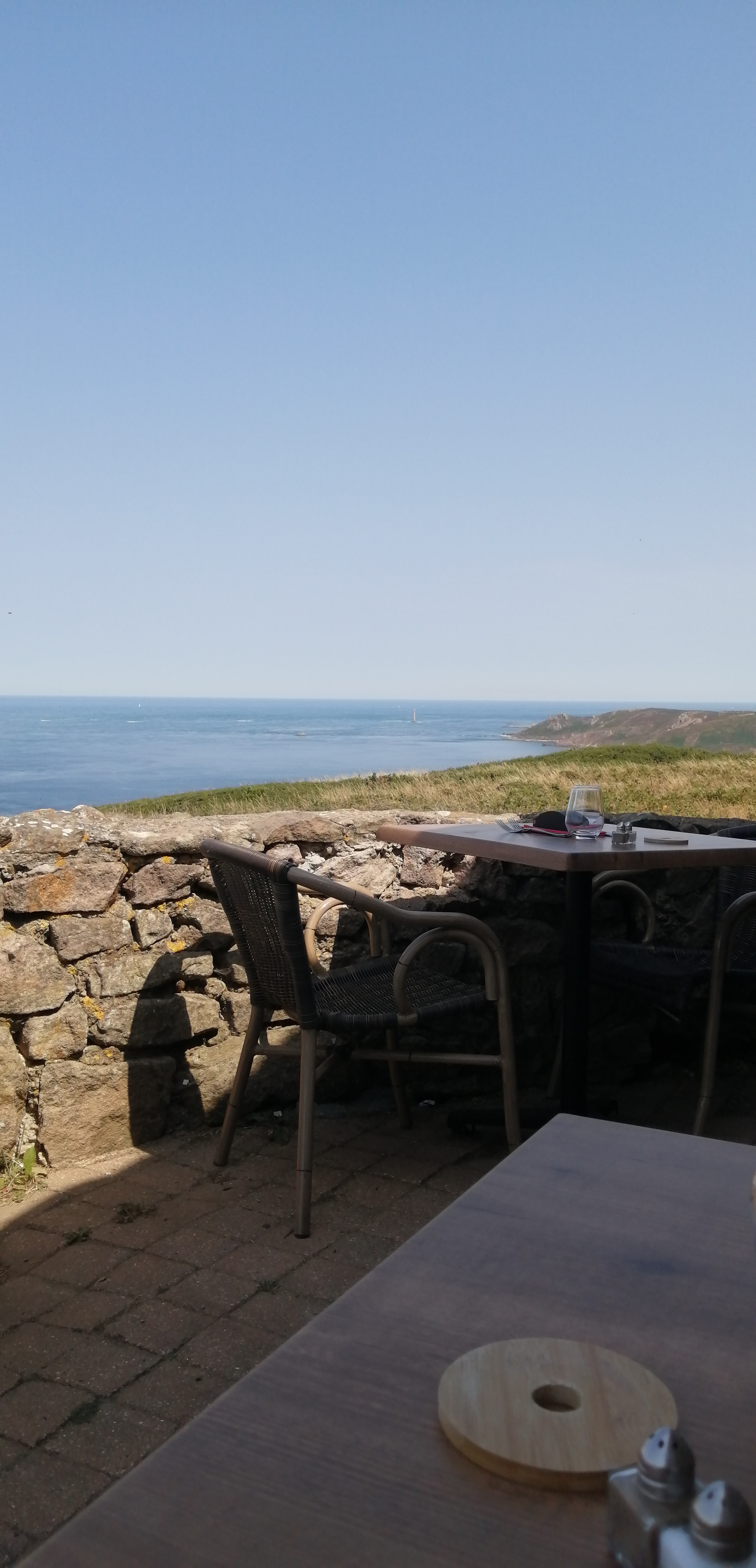 Un lieu buen agréable pour se restaurer à toute heure en regardant Aurigny et le phare de Goury.