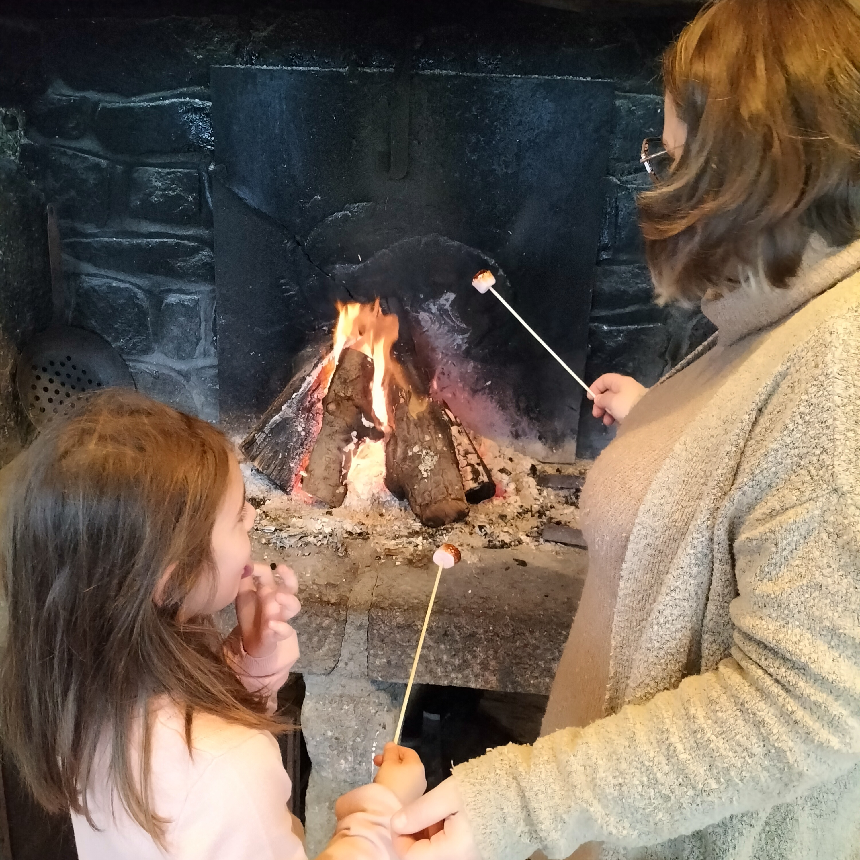 Un endroit parfait pour un moment de ressource et de détente. Rien de tel que de déguster une bonne crêpe et un thé chaud au coin d'une cheminée avec vue sur la baie au coucher de soleil en plein hiver ! Et en bonus : des chamalmows grillés au feu de cheminée offerts par la maison !