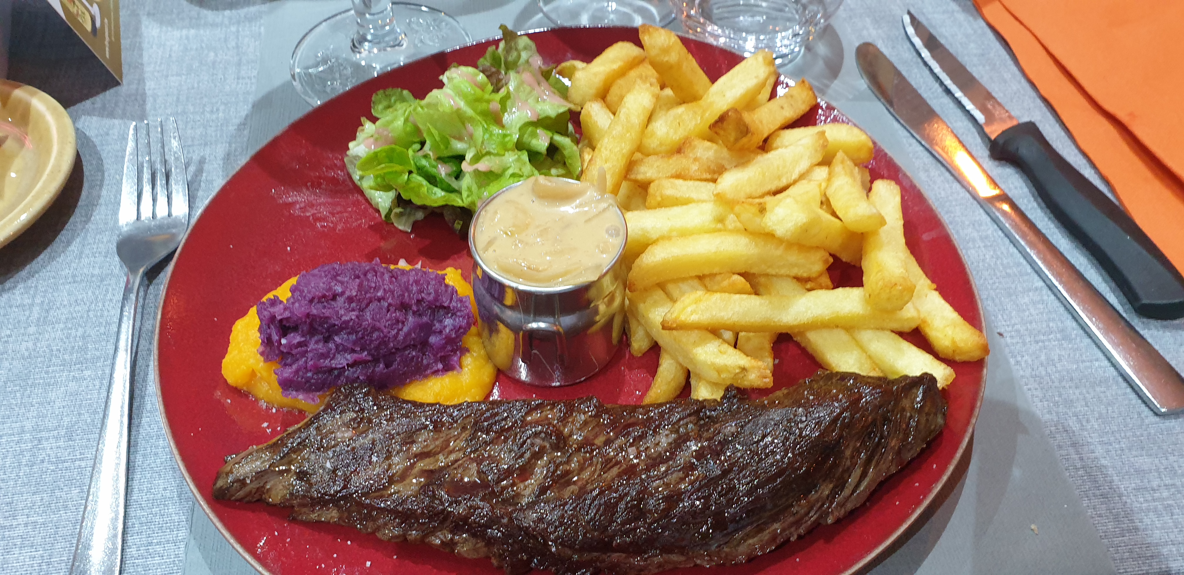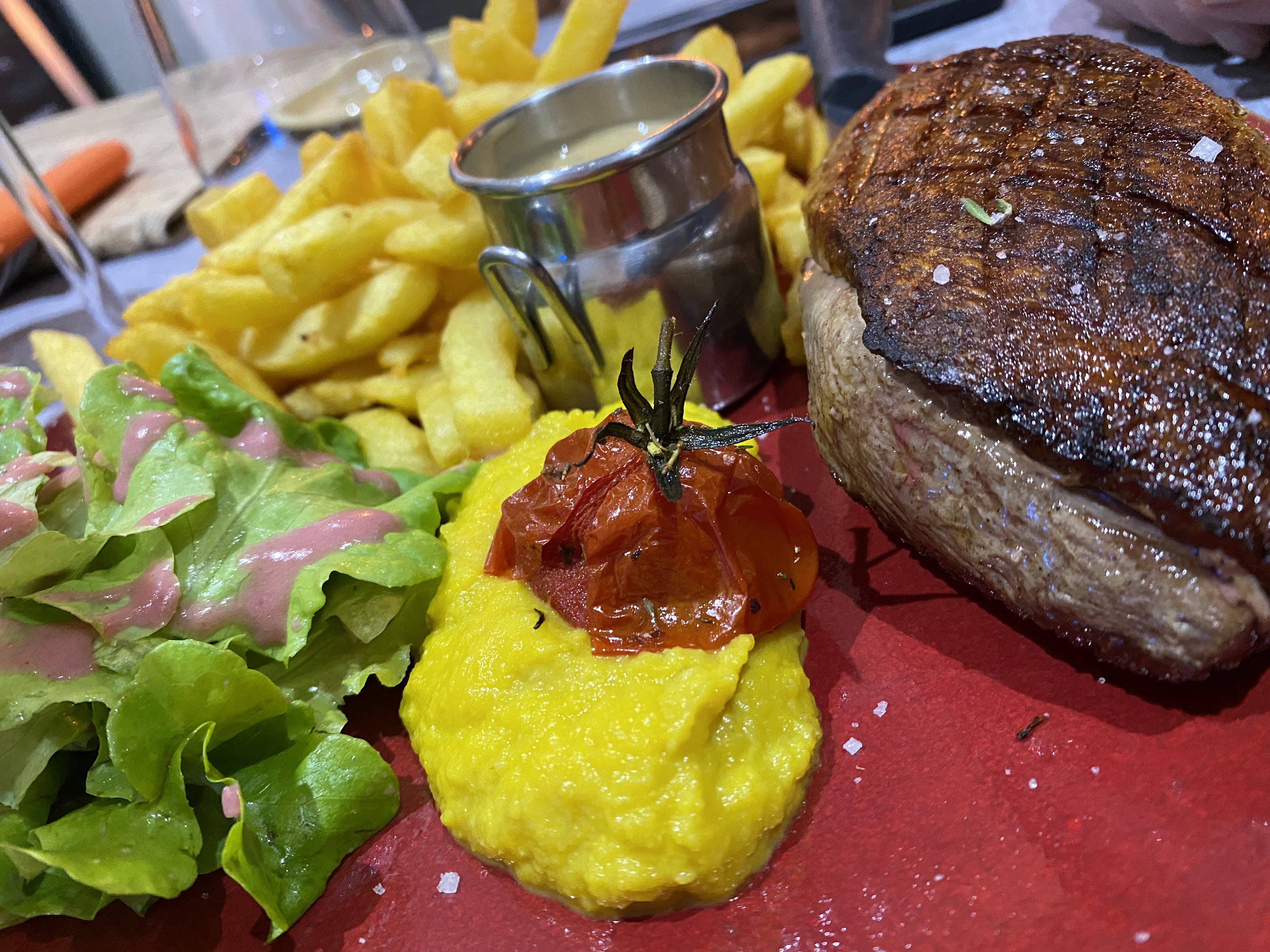 On s est régalé ! 10 / 10 , de l apéritif au dessert! Les viandes sont fondantes. Frites au gras de bœuf exceptionnelles! Un vrai moment de plaisir !