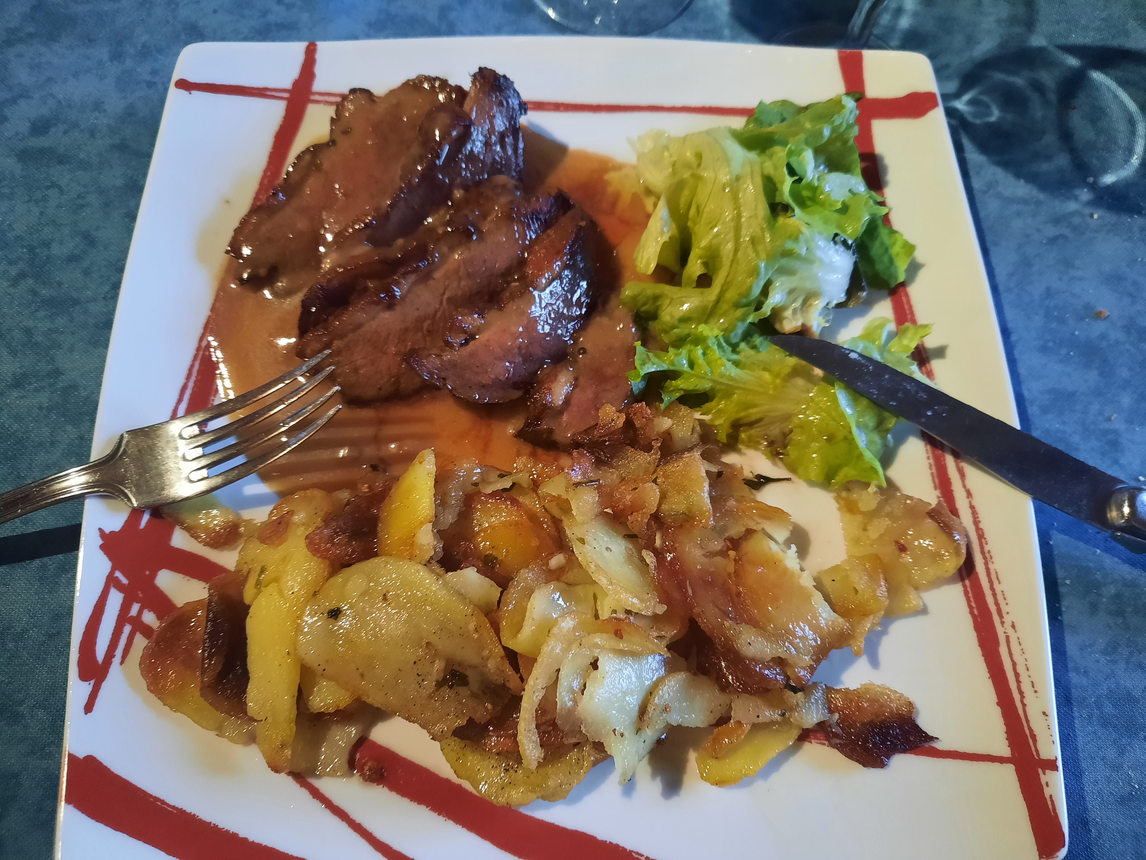Problème des pommes de terre salardaises, réchauffée, trop fines donc des chips et baignant dans l'huile. De plus le responsable un bien portant est bourru et pas très courtois avec la clientèle et encore moins avec ses employés Dommage on a essayé mais 1 fois
