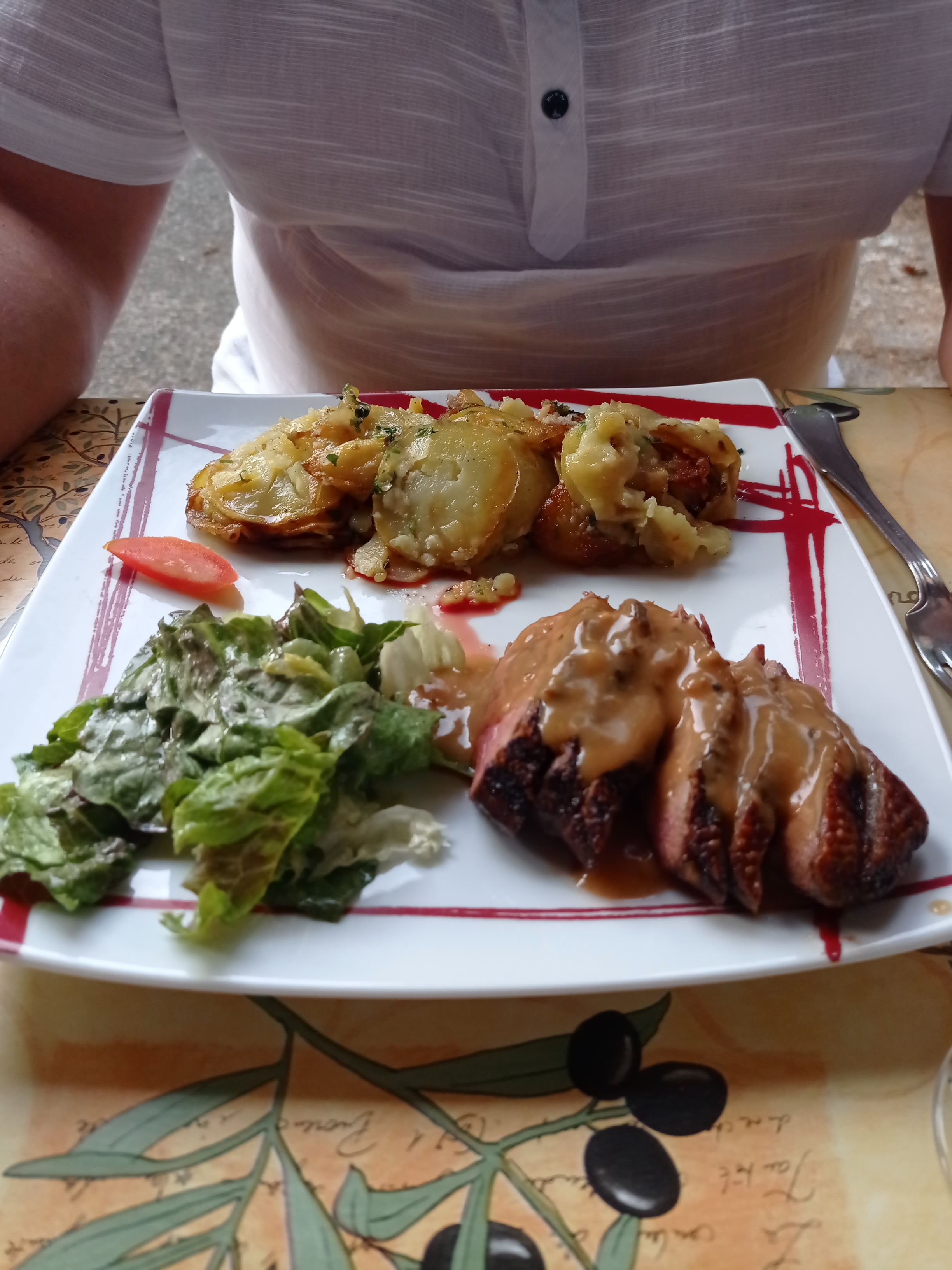 Une cuisine typique du Périgord savoureuse, des assiettes généreuses le tout sur une terrasse ombragée. Nous avons passé un agréable moment en famille.