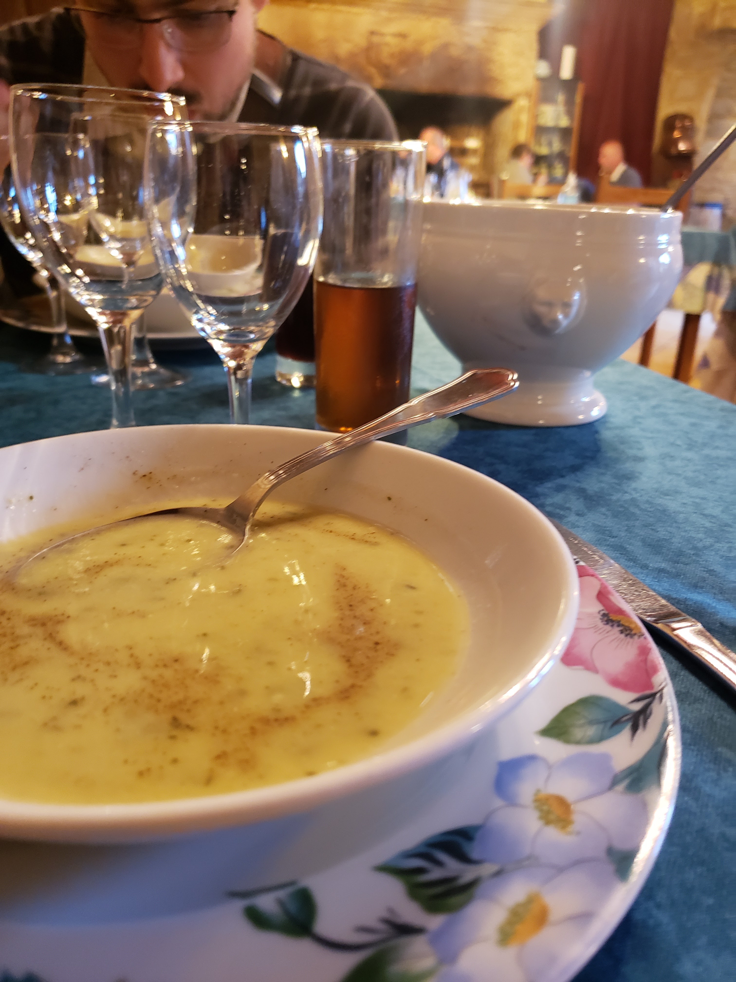 Nous avons dîné entre amis devant un feu crépitant dans une magnifique cheminée en pierre. Un menu comme on les aime dans notre beau Périgord , assiette campagnarde avec un foie gras mi cuit et une terrine de canard à tomber et je ne vous parle pas du foie poêlé et de ses pommes de terre sarladaises.... Un délice. Le confit de canard était lui aussi excellent. Je vous recommande très chaudement ce lieu si vous voulez vraiment goûter à la gastronomie du Périgord noir. Cette auberge est notre coup de coeur de tout notre séjour. Nous y retournerons a coup sûr.
