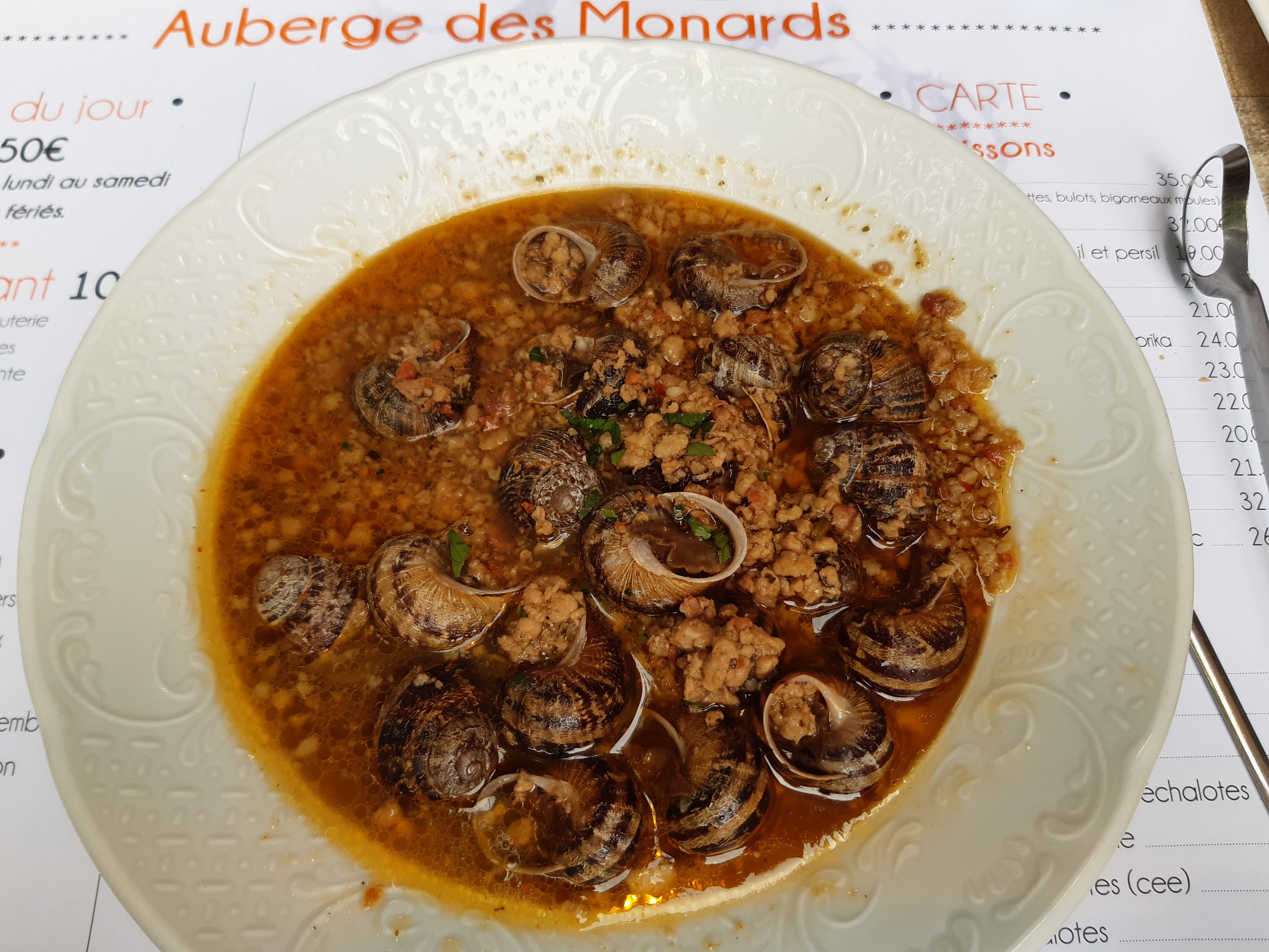 Cela fut un ravissement pour les papilles et l'accueil dès plus chaleureux ! Nous avons eu le droit à prendre un menu à 38 euros alors que nous avons choisi à la carte ! Nous avons tous pris les mêmes entrées, plats et dessert que je recommande vivement : les escargots, la côte bœuf (prévu pour 2 et nous étions 3 donc la patronne nous en a sélectionné une des plus grosses) et pour finir leur délicieuse tartin ! L'auberge des Monard à tout pour plaire et pourrait paraître parmi les restaurents gastronomiques de la région ! Bonne dégustation ! :)