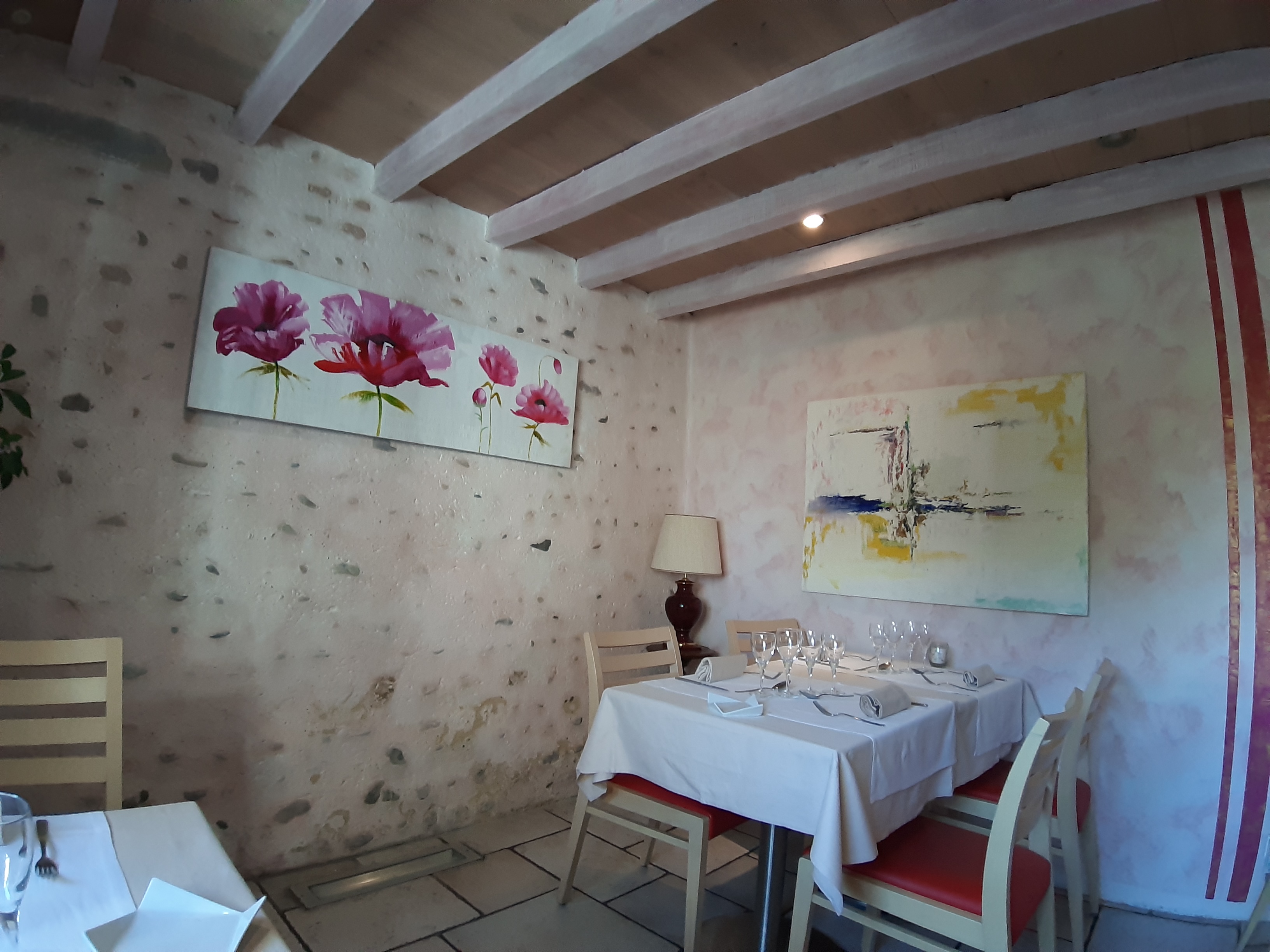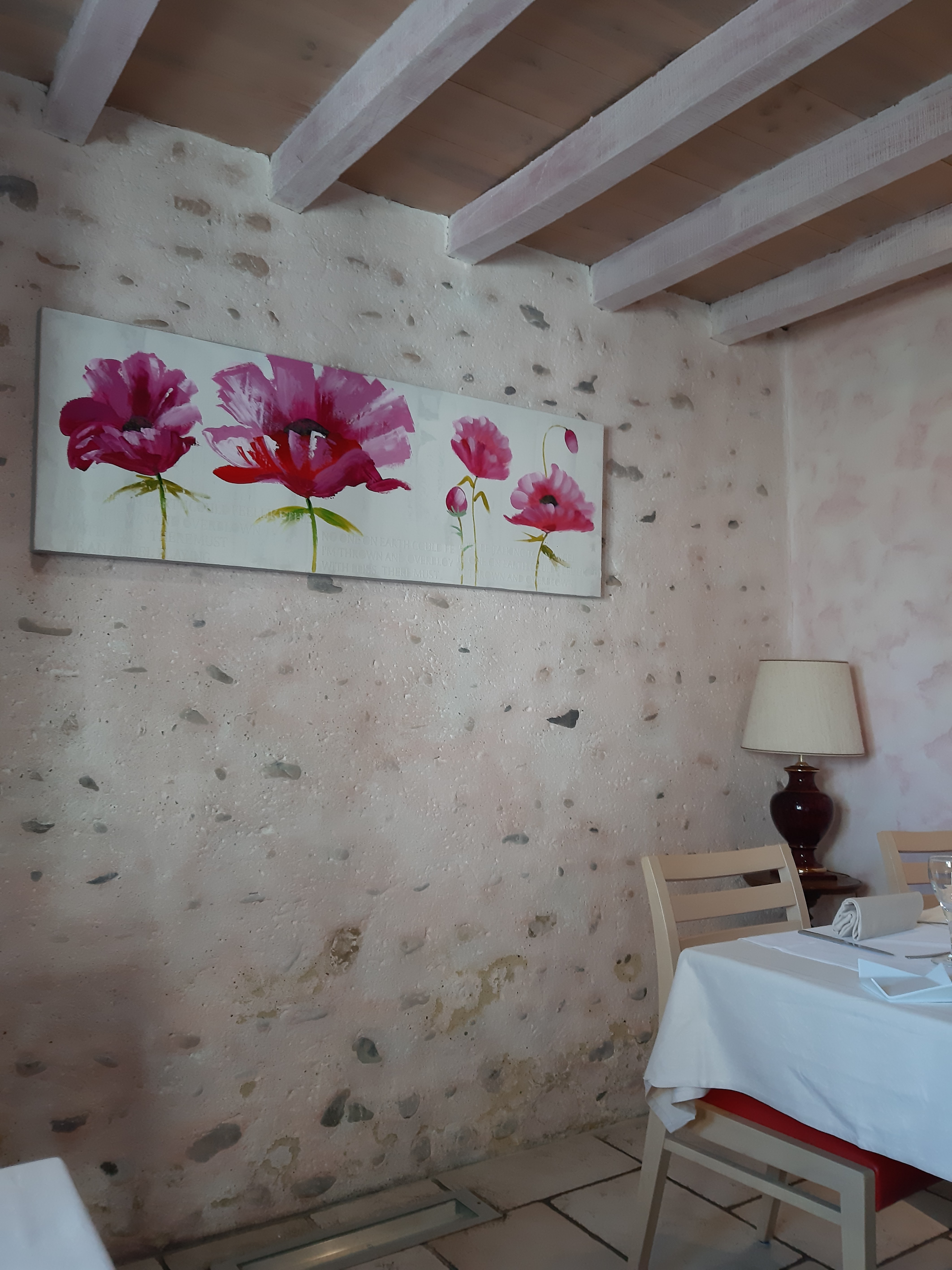 Un repas en couple, comme ça, pour le plaisir. Réservation effectuée et confirmation de réservation reçue dans les temps. Magnifique cadre dans la campagne. Dîner sur une terrasse couverte mais visite de l' intérieur qui est très sympathique avec une exposition de tableaux peints par un (ou une) artiste. Des roses bien sûr pour nous accueillir et près de la terrasse. Très bon moment avec un excellent menu, copieux, gourmand, tout est OK et service impeccable.