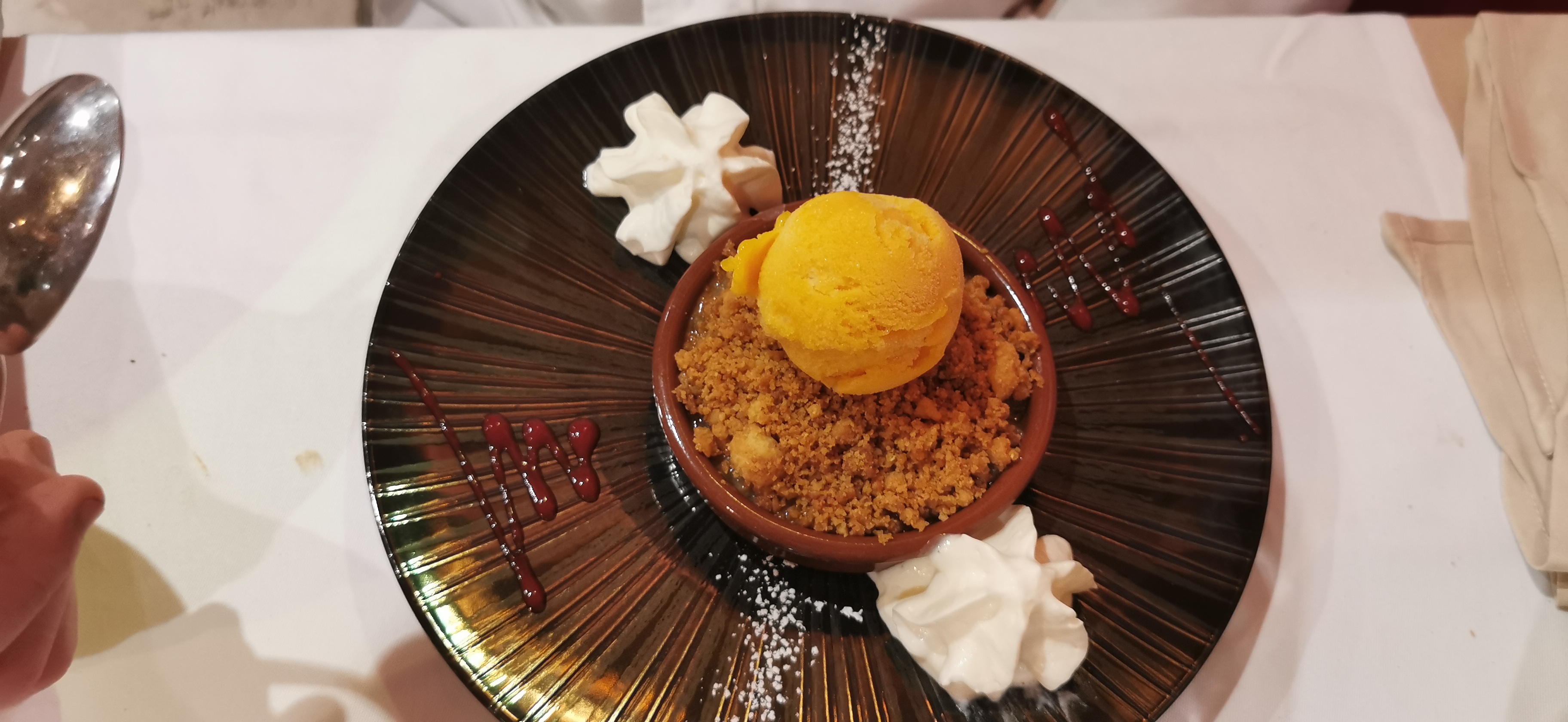 Accueil chaleureux malgré la crise sanitaire et les restrictions en place. Plats très bien présentés et délicieux de l'entrée au dessert. Juste un prix un peu élevé sans être hors de prix non plus. Bref, à aller manger sans hésiter.