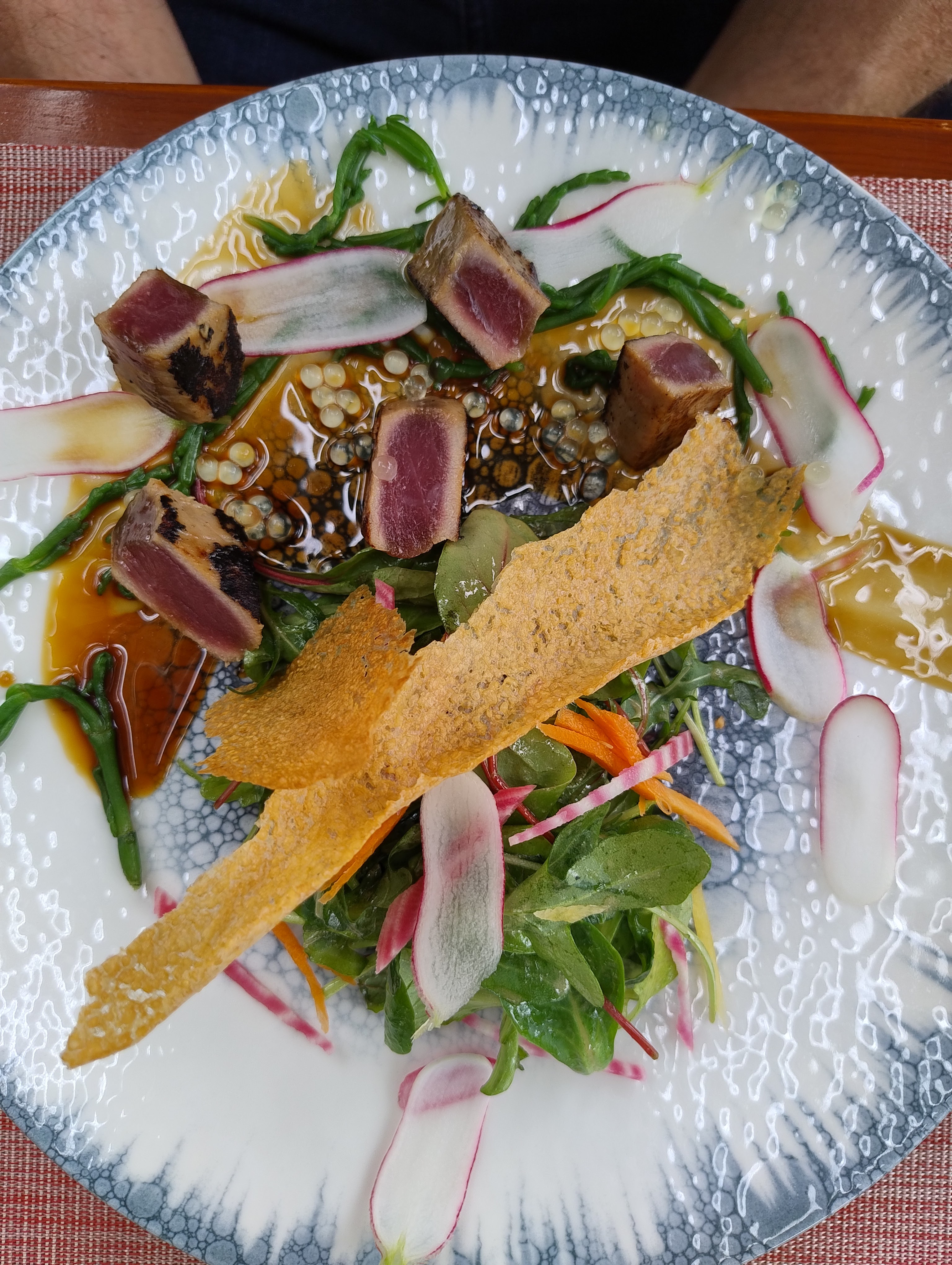 Dans l assiette une très belle présention de produit délicieux un environnement qui rajoute au plaisir d être sur cette terrasse l accueil et le service la cerise sur le gâteau