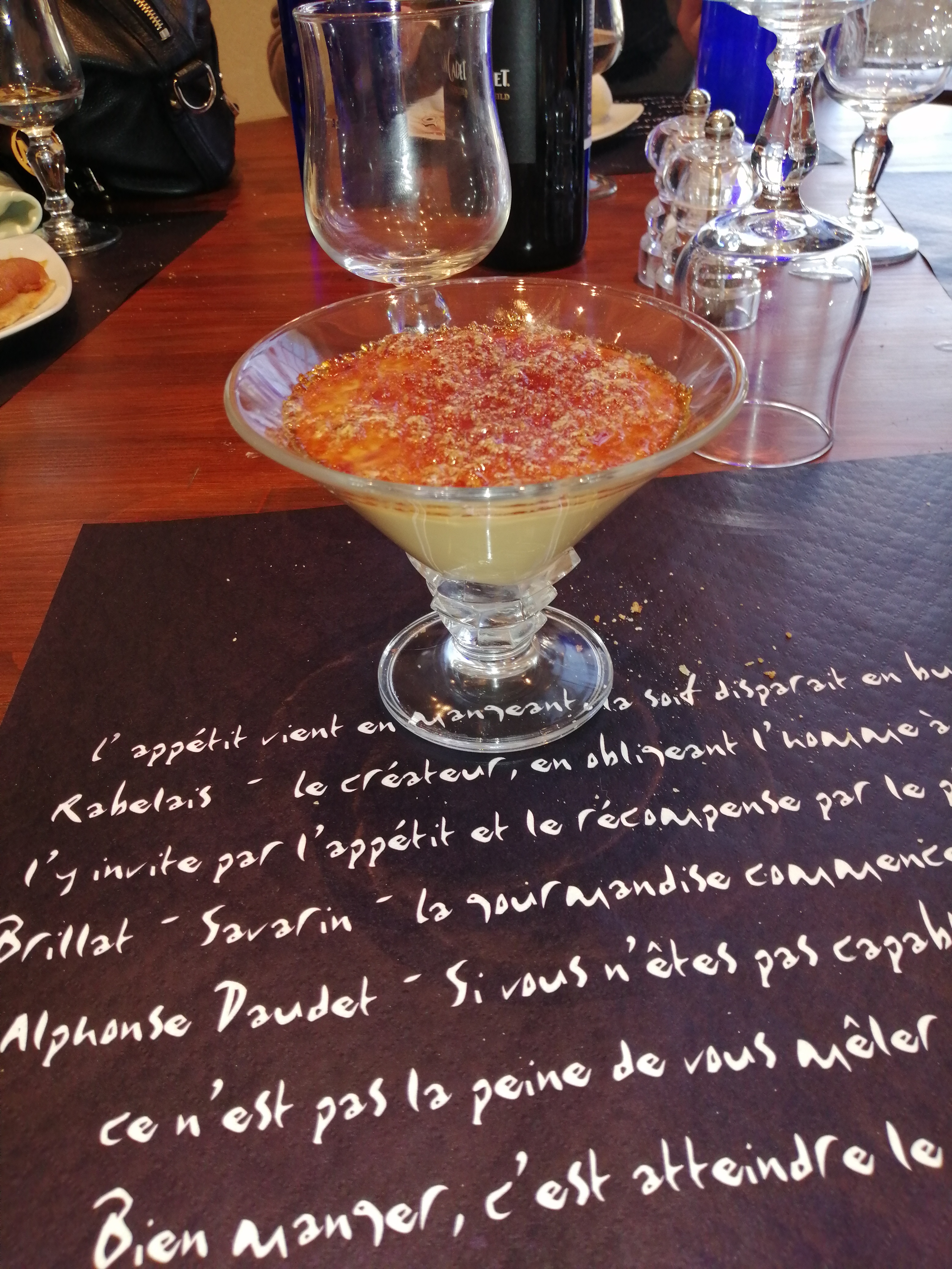 Un bon moment dans ce restaurant, la cuisine est très correct, service impeccable malgré peut être un léger débordement de la serveuse seule aux commandes, seul bémol les vins peut de choix et assez cher pour des côtes du Rhône