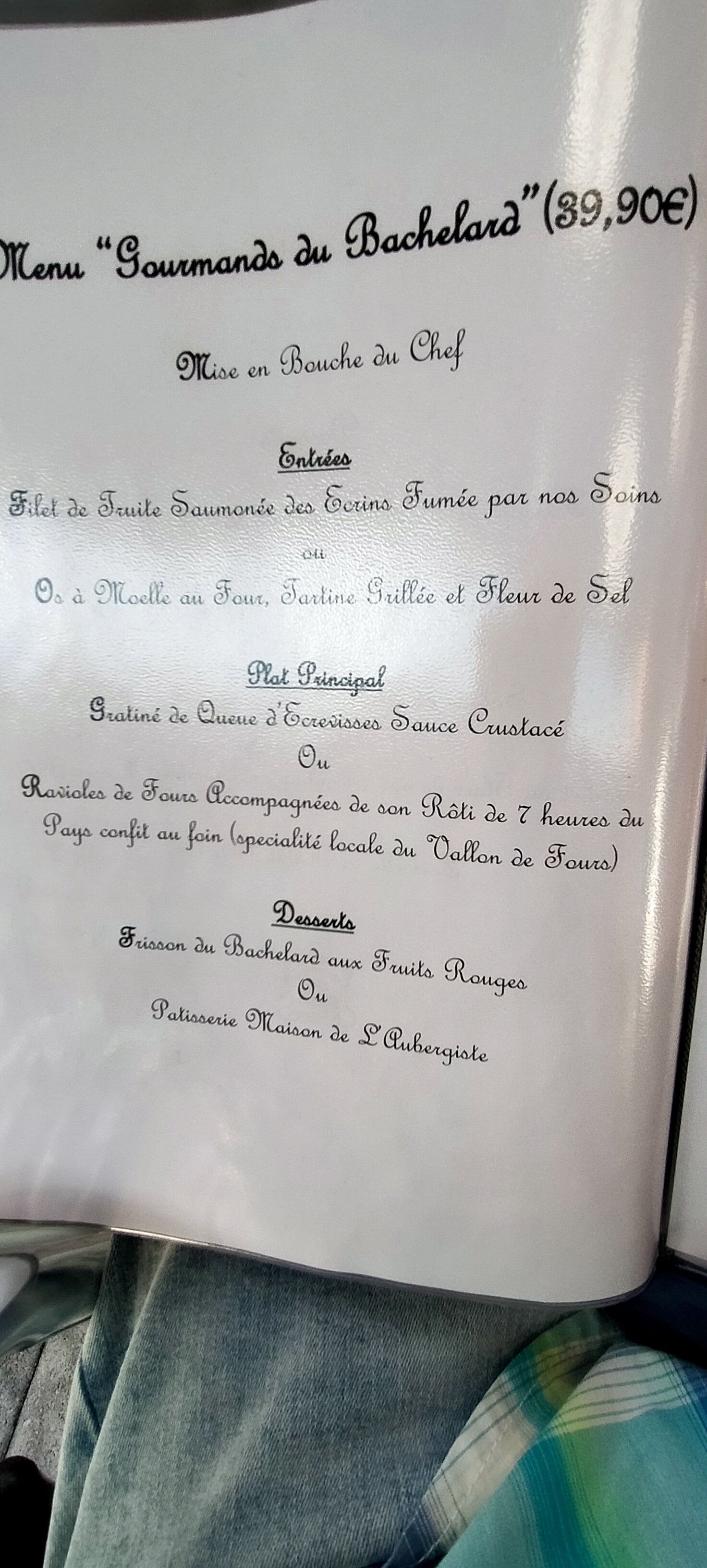 Acceuil chaleur,cadre très agrable,nous nous sentons bien.De tres bons produits,très goûteux,tres belle presentation ,copieux mais raffiné. Personnel aux petits soins pour ses clients. Le cuisier passe à chaque table et discute avec les clients.Genepi offert très gentiment. La cuisine et le personnel très propre. Nous y retournerons. IL faut y aller ,vous ne serez pas déçus.