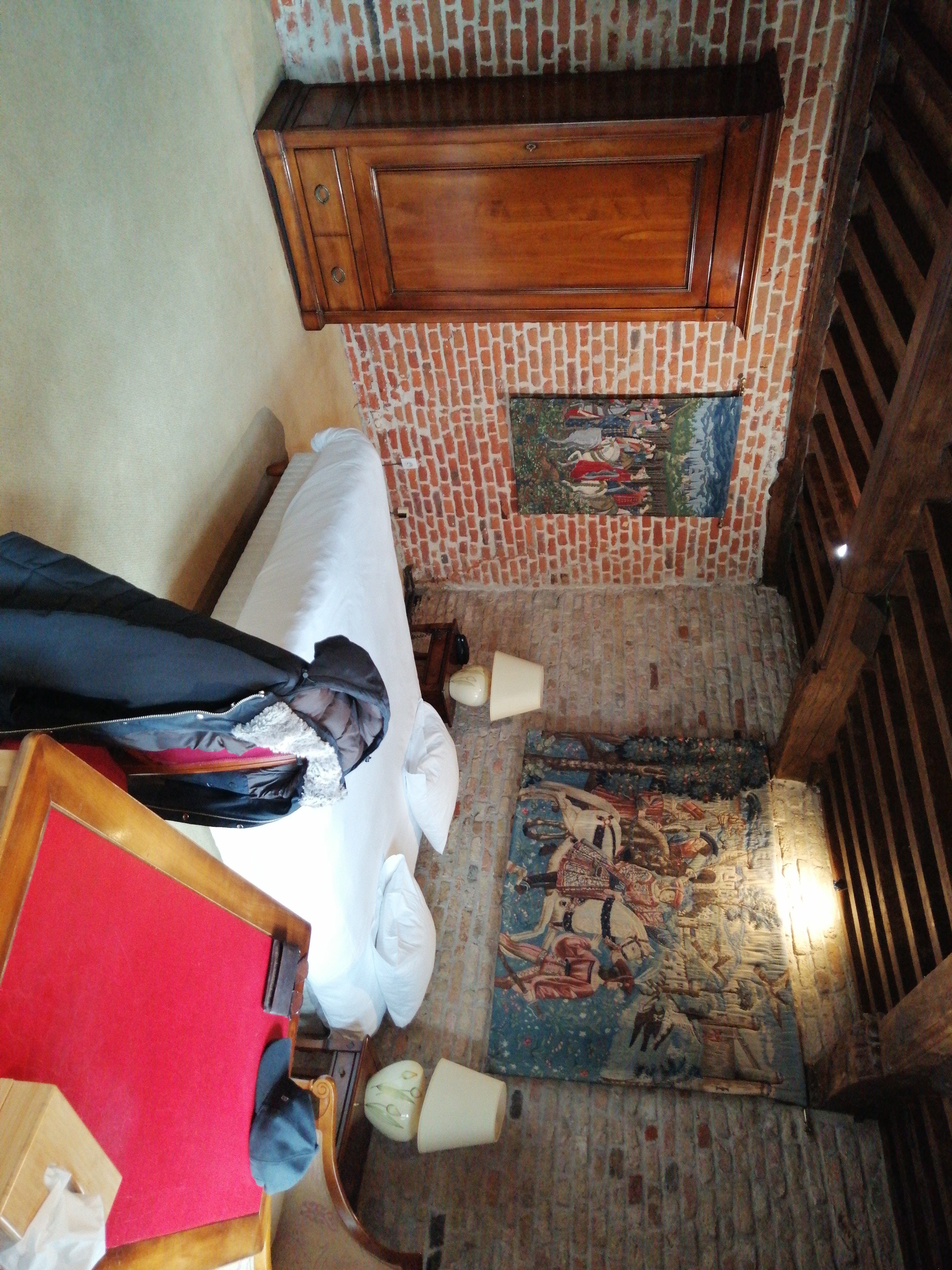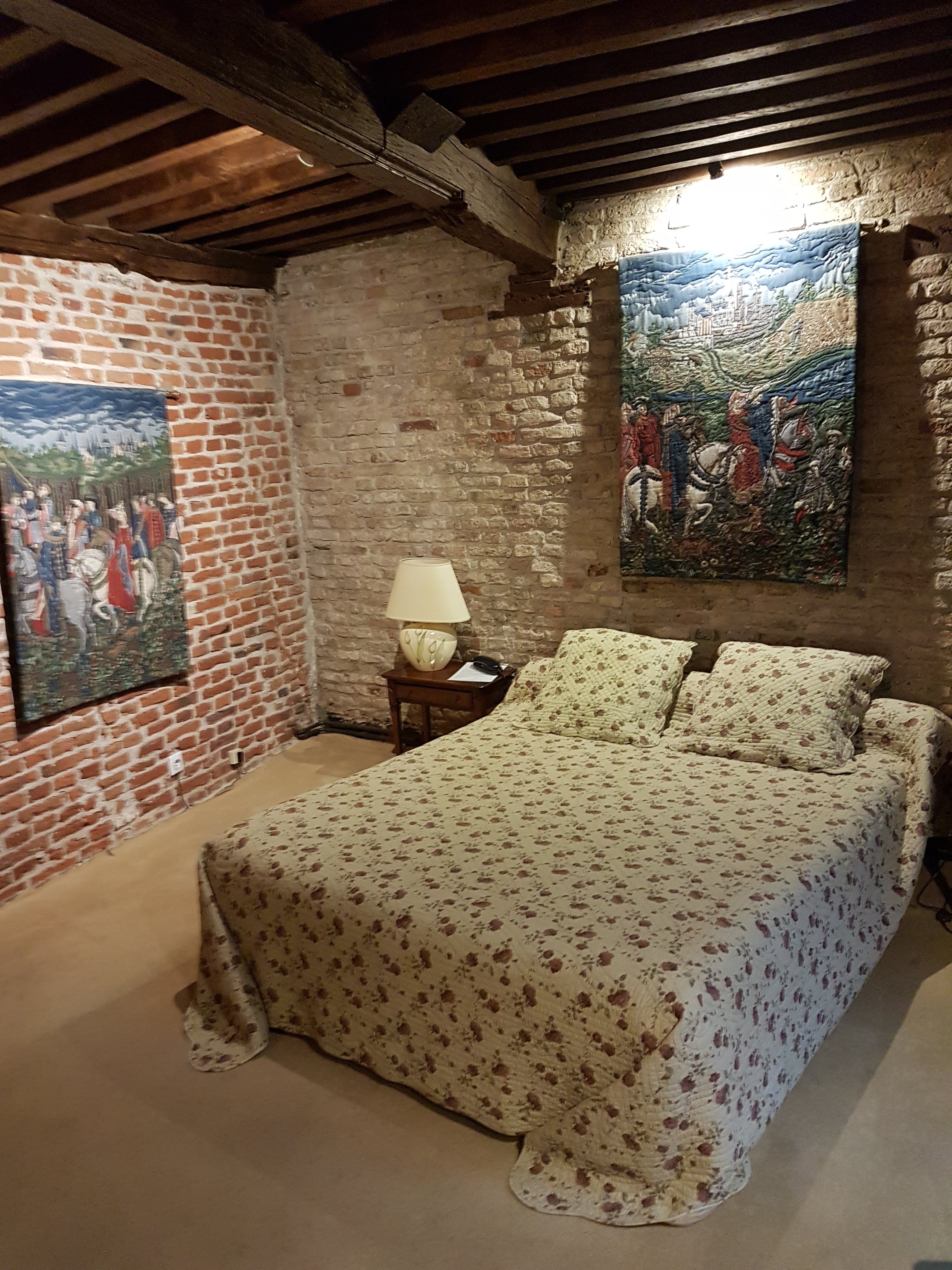 Cet avis concerne l'hôtel. Les chambres sont originales, grande et dans une déco médiévale. Alors c'est chouette la déco médiévale, par contre le confort médiéval l'est nettement moins. Il me fallait plusieurs minutes pour avoir de l'eau chaude, pas de douche ici, uniquement une baignoire en sous pente en plus... Et franchement pas de prise électrique, y'a rien de plus exaspérant pour une chambre 100€ ! Le petit déjeuner à 11€ c'est du vol, pour 5€ au première classe on a exactement la même chose...
