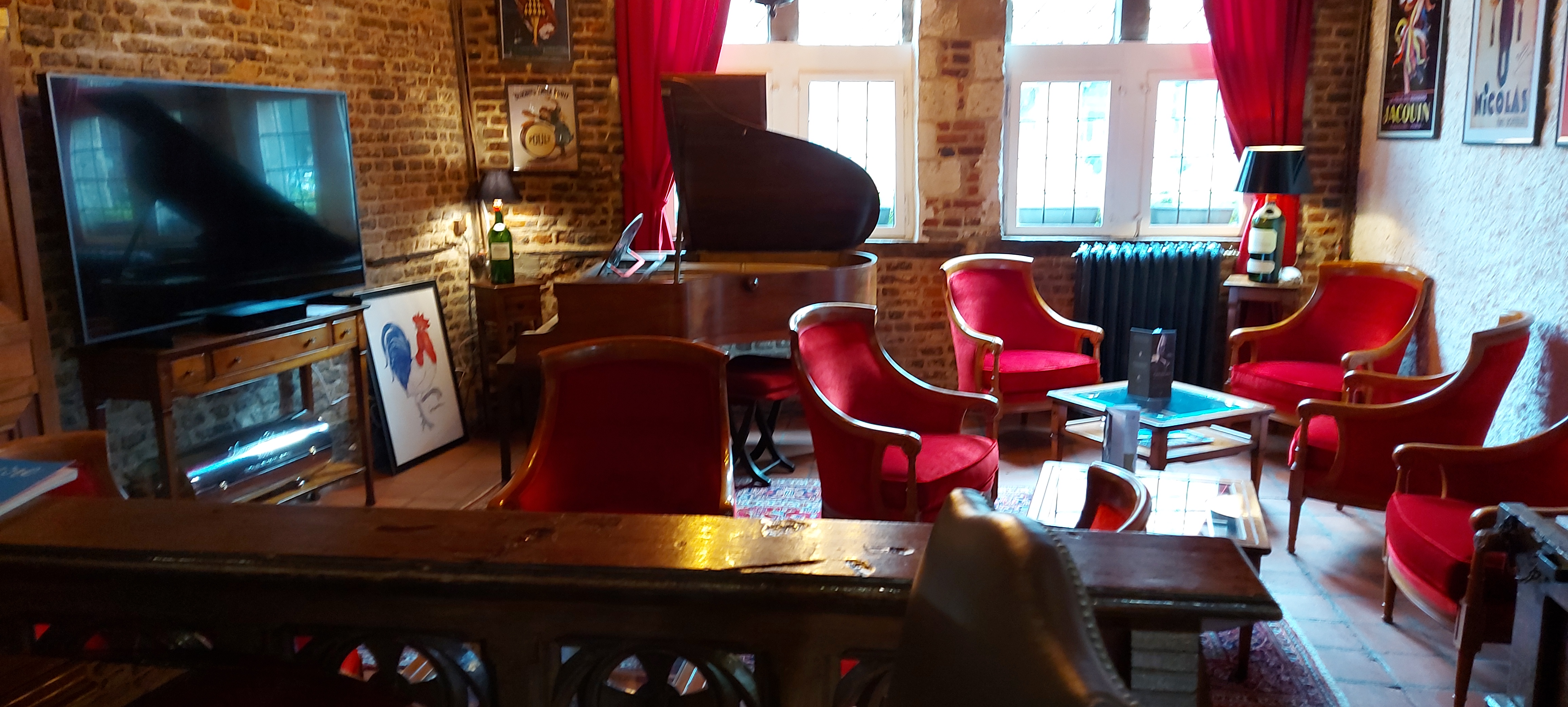 Restaurant : Un beau restaurant plein de caractère et de détails historiques. Nous avons eu deux excellents repas, le poulet, la purée de pommes de terre et les desserts étant particulièrement bons. Nous étions un grand groupe qui marchait en une soirée et le service était accueillant, patient avec nos tentatives de français et gentil avec les enfants.