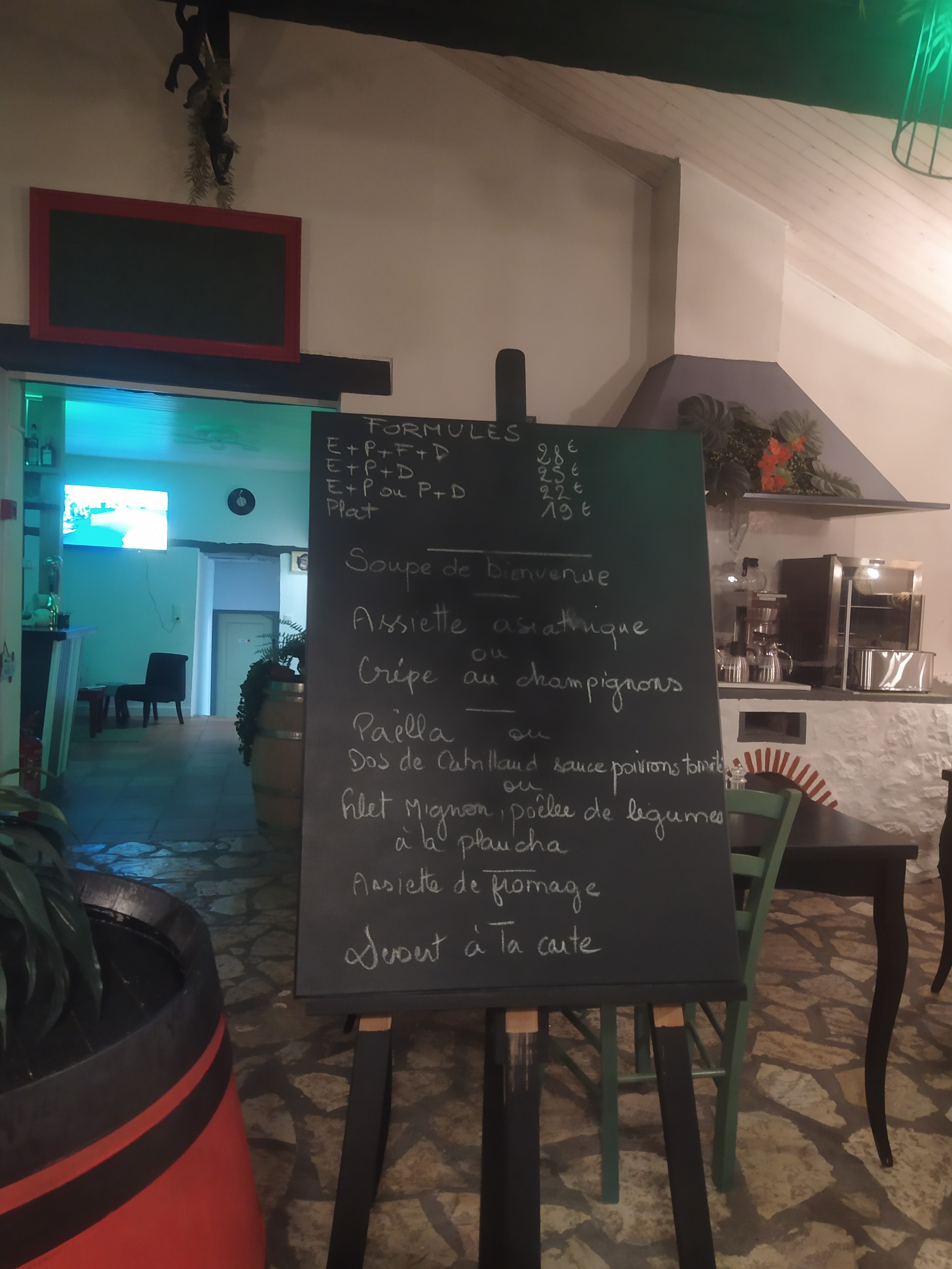 Le cabillaud est absolument à éviter. Papillote dans de l'aluminium servie telle qu'elle dans l'assiette. Quelques frites et 1 demie tomate dite de provençale (je cherche encore la persillade et la chapelure) . Aucun assaisonnement, très très fade. Je pense qu'un enfant ferait mieux. L'aluminium complètement froissé dans l'assiette, inadmissible. Pas présentable, pas écologique, peu recommandé pour la santé. 19euros l'assiette quand même. Aucun professionnalisme dans le service fait par un jeune homme, côté restaurant. Seul un vin de Bordeaux est au verre. Dans notre région c'est un peu dommage. Ceci dit l'endroit est agréable et les personnes accueillantes. Je ne juge nullement les autres plats ni la partie auberge qui sont certainement très bien.