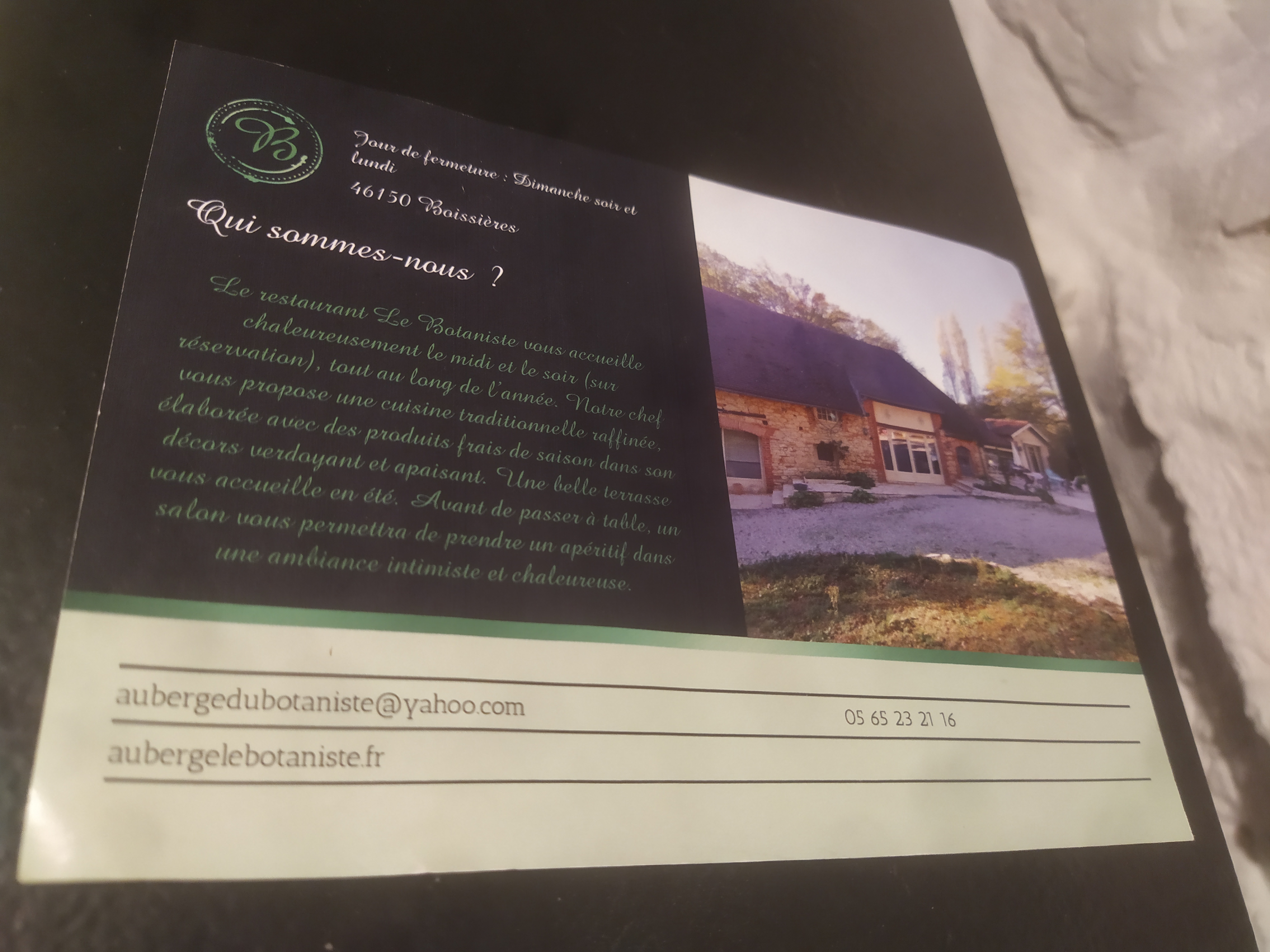 Le Botaniste est un vraiment un endroit à découvrir si vous passez dans le Lot. On est loin du restaurant attrape touriste. L’ambiance est chaleureuse, le cadre vraiment sympa, une équipe qui a réellement le sens de l'accueil et du service et côté cuisine, c'est tout simplement très bon. Bravo. Très bon moment.