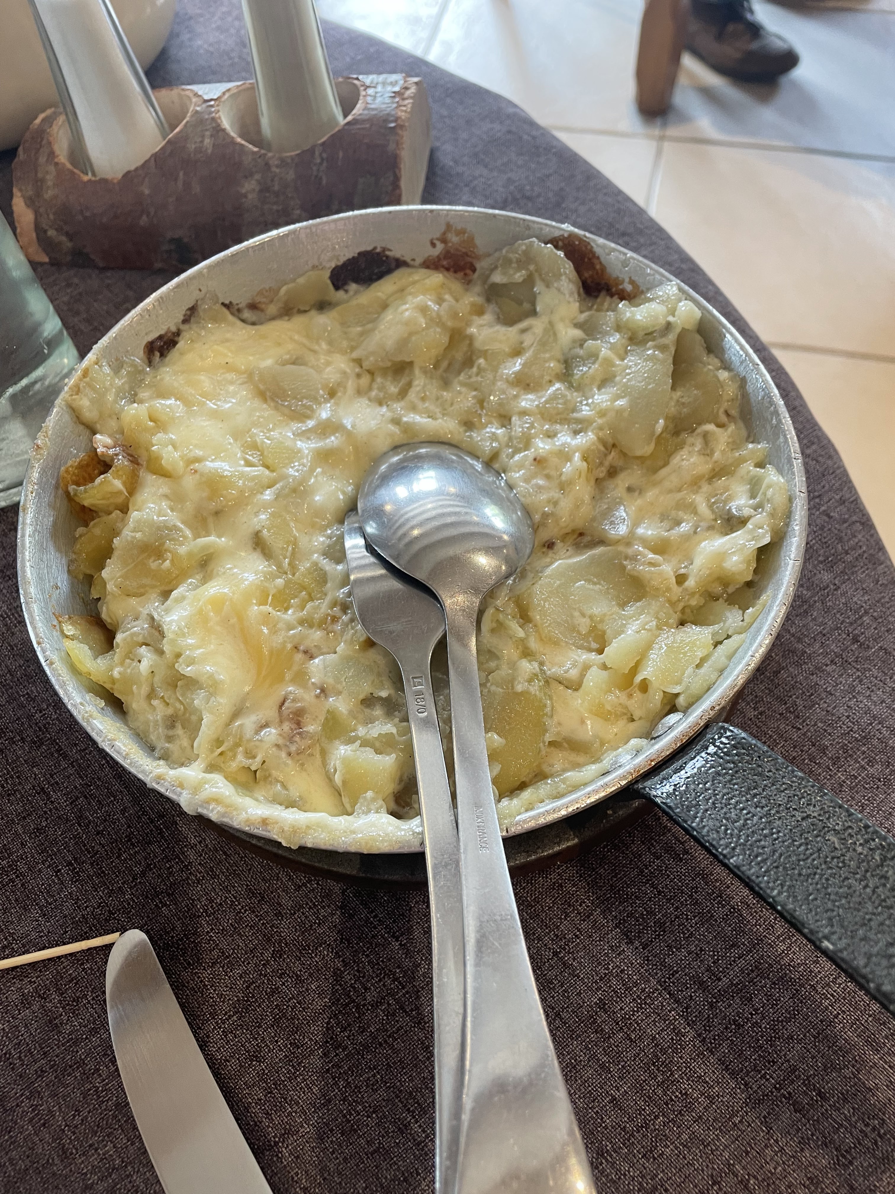 Truffade excellente et servie généreusement. En revanche le service devient vite désagréable en présence d enfants. Le prêt de la chaise bébé et les jouets mis à disposition nous ont en fait été facturés 4 euros. Pourquoi pas si cela ne nous avait pas été expliqué avec beaucoup d agressivité. Nous ne regrettons pas notre passage mais ne reviendrons pas.