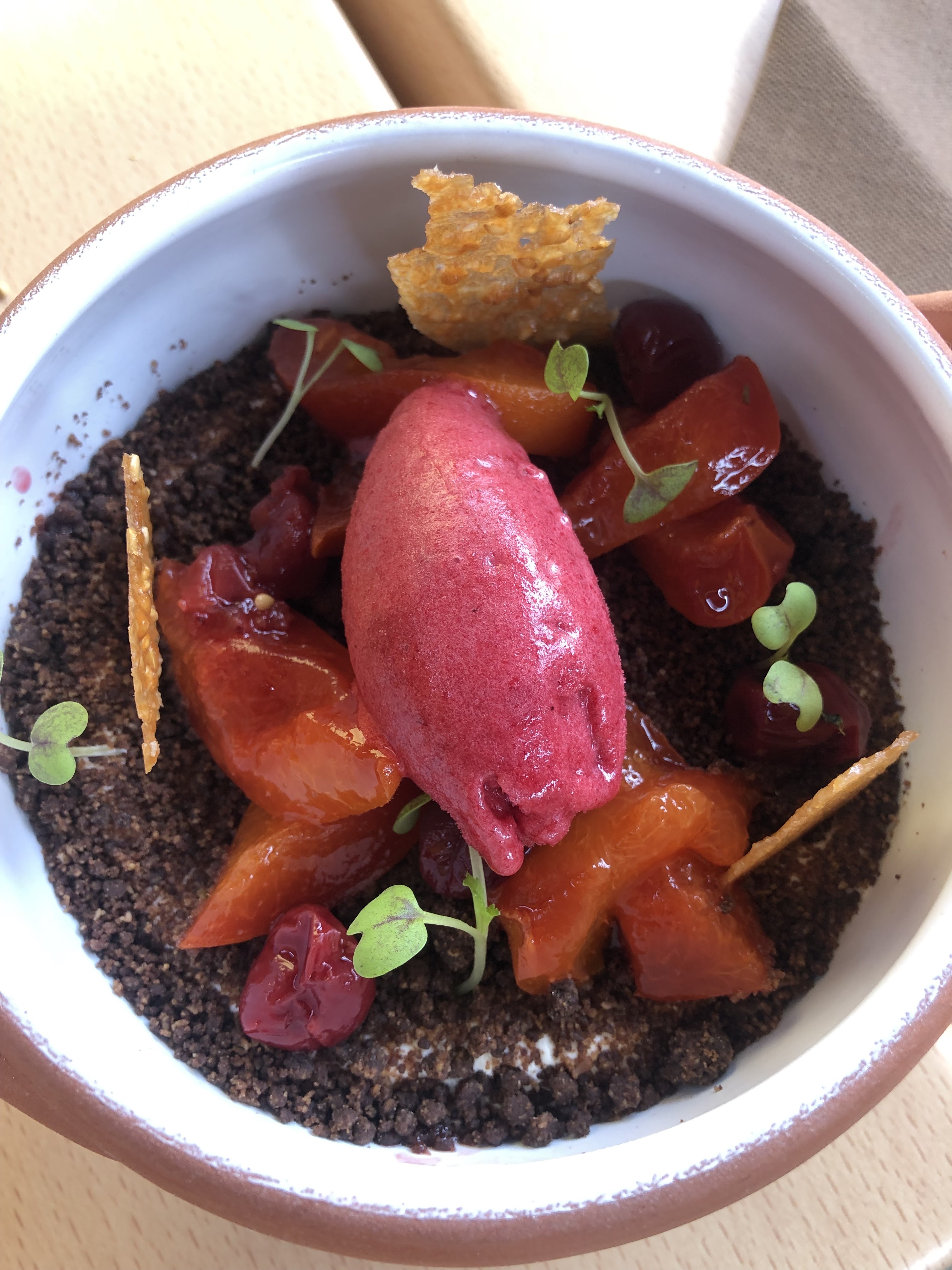 Quelle bonne adresse ! Entre équilibre des saveurs et poèsie : tarte flambée revisitee, nems enrobés cacahuètes aux légumes, lieu jaune espuma et pour finir un potager sucré un vrai poème. Et quel accueil quel magnifique moment sur la terrasse. Merci pour ce fabuleux moment en famille autour de plats exquis