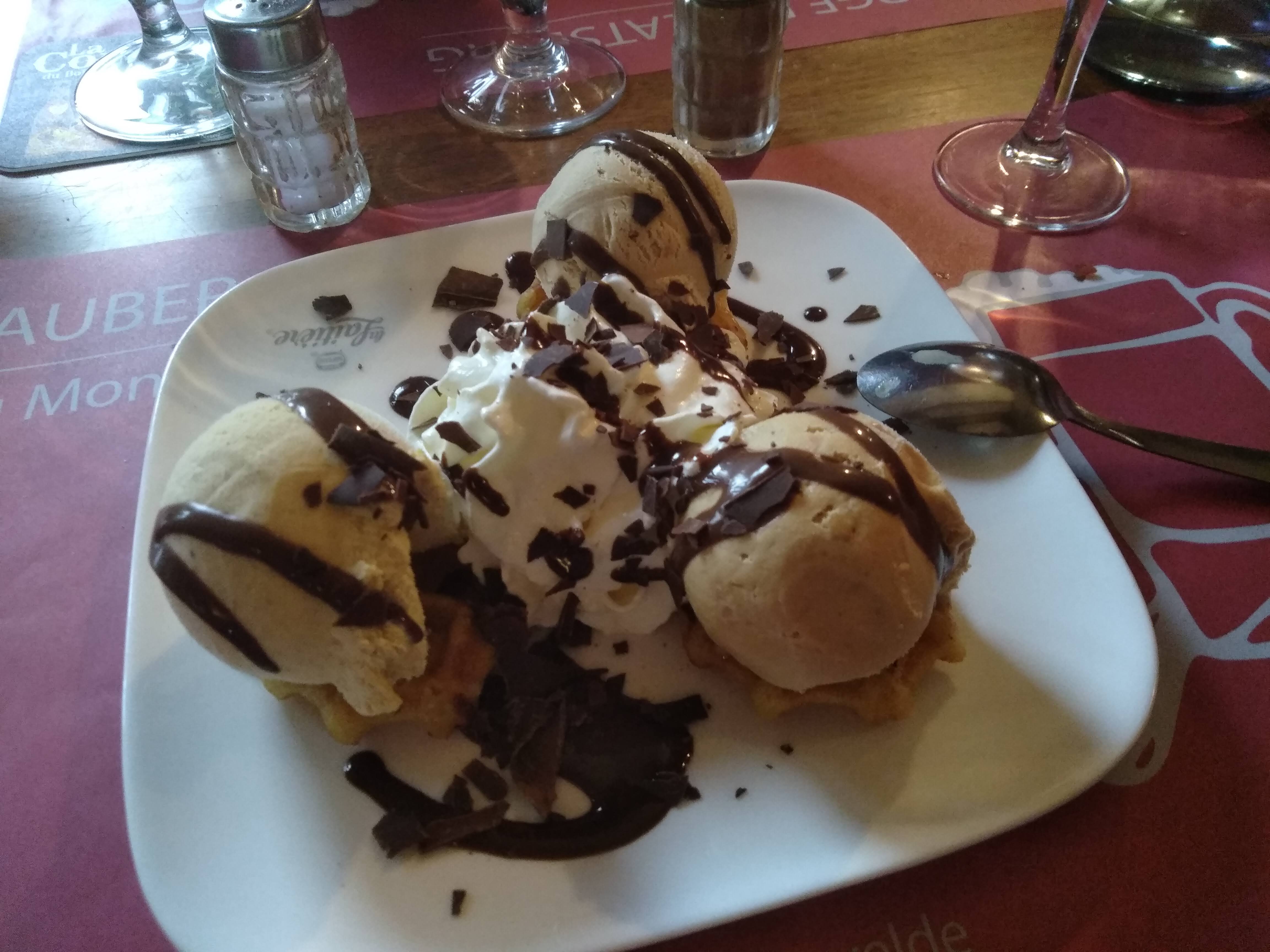 Accueil très chaleureux de la part du patron du restaurant. Bonne disponibilité et amabilité de la part des serveurs. Beaucoup de choix sur la carte. La bavette angus et la carbonnade flamande étaient délicieuses. Le café gourmand également. Endroit convivial et familial - bien que la pièce soit assez bruyante en raison de la résonance et du monde présent. Nous recommandons sans hésiter.