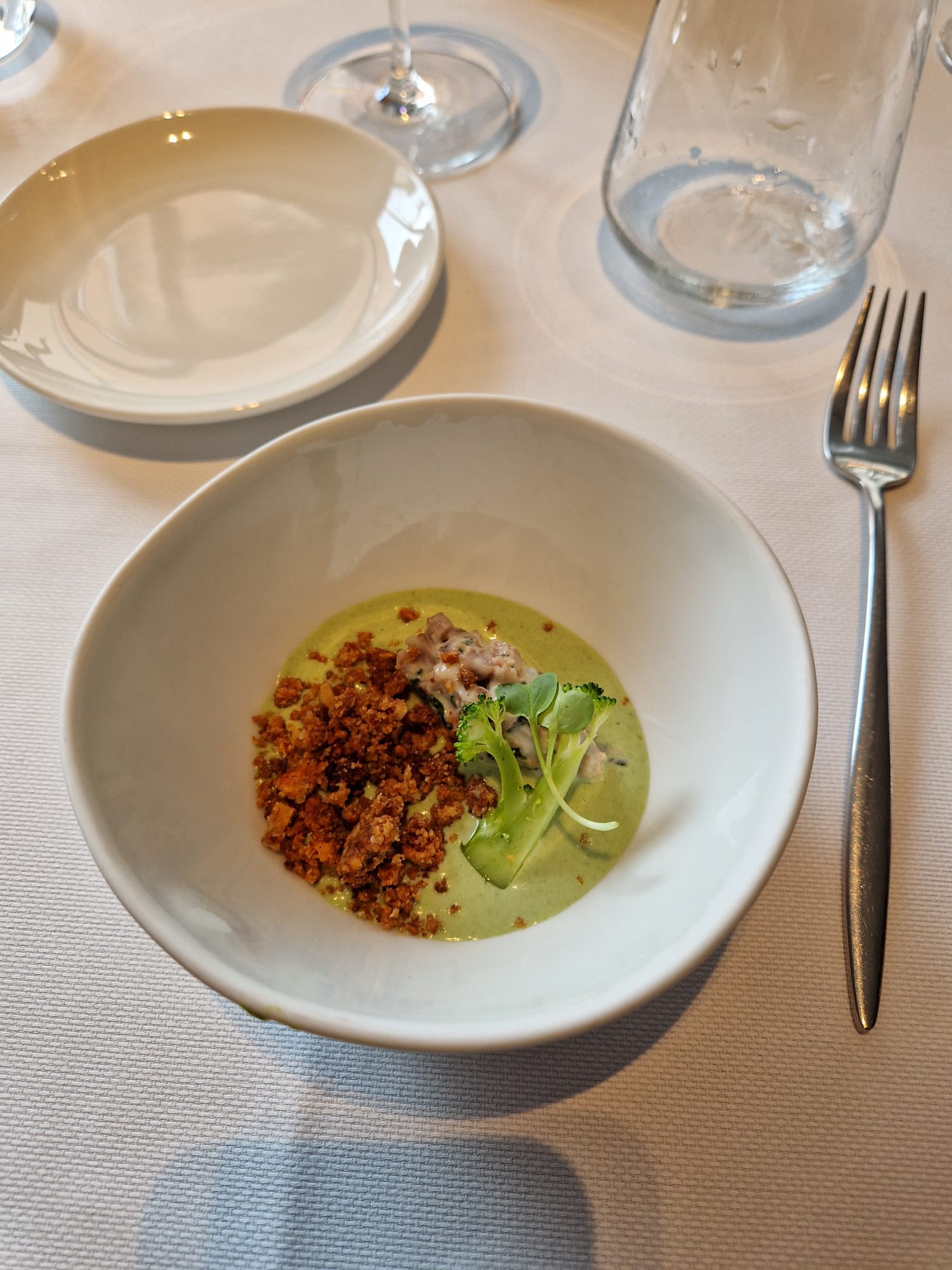 Première fois dans ce restaurant et certainement pas la dernière, un accueil et un décor tout en sobriété, un plaisir gustatif au top, tous les plats jusqu’au dessert étaient une réussite avec de la finesse et de l’originalité, étoile amplement méritée, assurément une très belle découverte