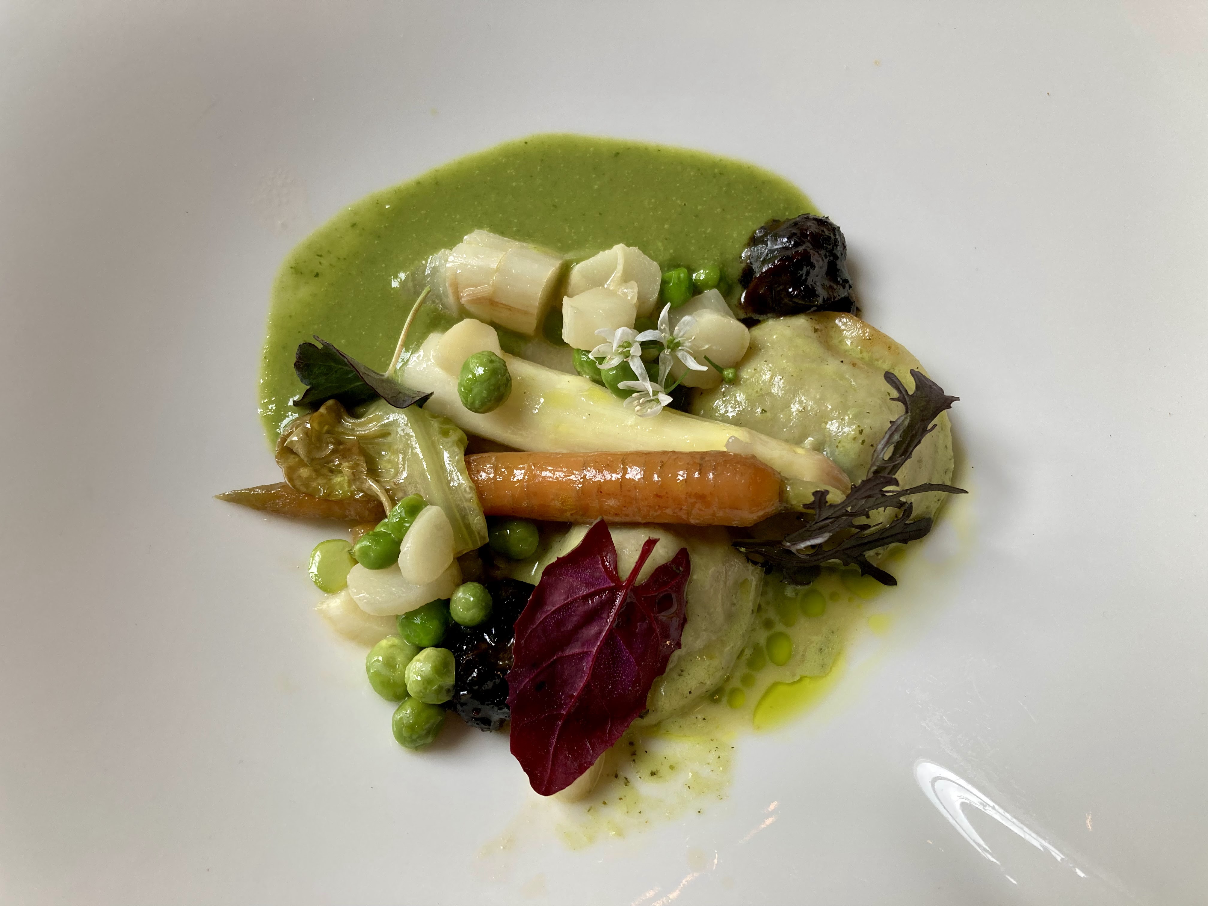 Première table de notre petit périple dans le Beaujolais et très belle expérience. Nous nous sommes régalés du début à la fin. Un sans faute pour nous. Le petit extra avec le pâté en croûte était une mise en bouche très goûteuse et gourmande. Les ravioles aux escargots nous ont emmené pour une balade dans le jardin. La canette était délicieusement parfumée, la cuisson maîtrisée, un bonheur. Le comté râpé m’avait intrigué et c’était très bon, une belle surprise qui met ce fromage en valeur. Et pour finir le soufflé, que j’affectionne particulièrement, dont le sucre était ici contrebalancé par la légère acidité de la compotée de rhubarbe. La salle était parfaitement tenue par une équipe féminine qui a orchestré notre repas en nous proposant les boissons adaptées (notamment un Fleurie 2018 qui nous a comblés).