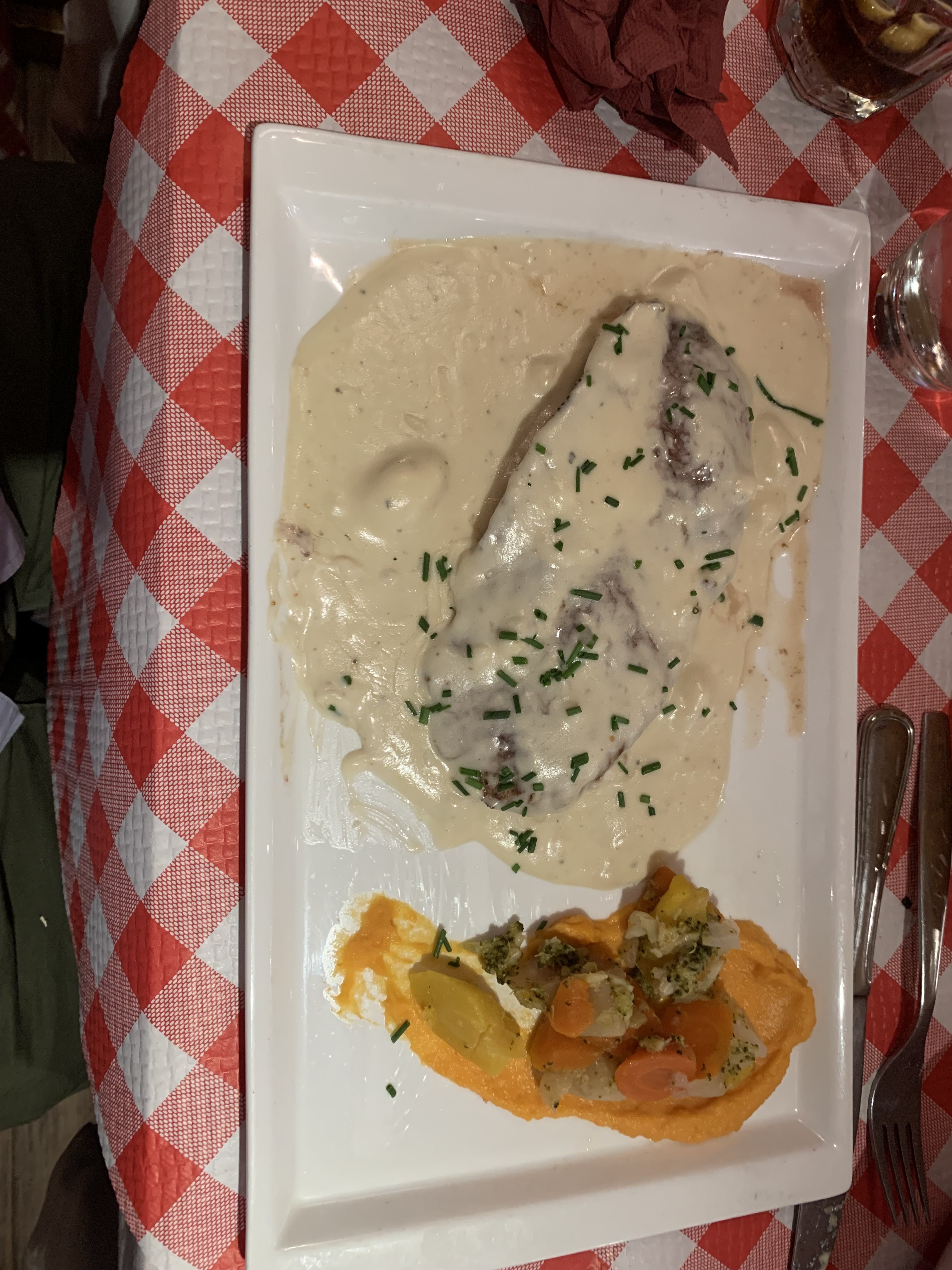 Bon repas mais service à revoir… Sur la carte « cordon bleu de volaille » je demande si c’est du poulet ou de la dinde. La réponse « bah c’est de la volaille poulet ou dinde c’est quoi la différence ? » Ensuite un bouchée à la reine servi avec des tagliatelles (inscrit sur la carte et annoncé par le serveur) nous avons reçu des spaghettis ! La réponse « oh c’est des pâtes c’est pareil » Enfin bref tout était bon mais niveau communication et empathie avec le client 0 Nous ne reviendrons pas. Nous payons un service aussi et se sentir juger par le serveur, ça non.