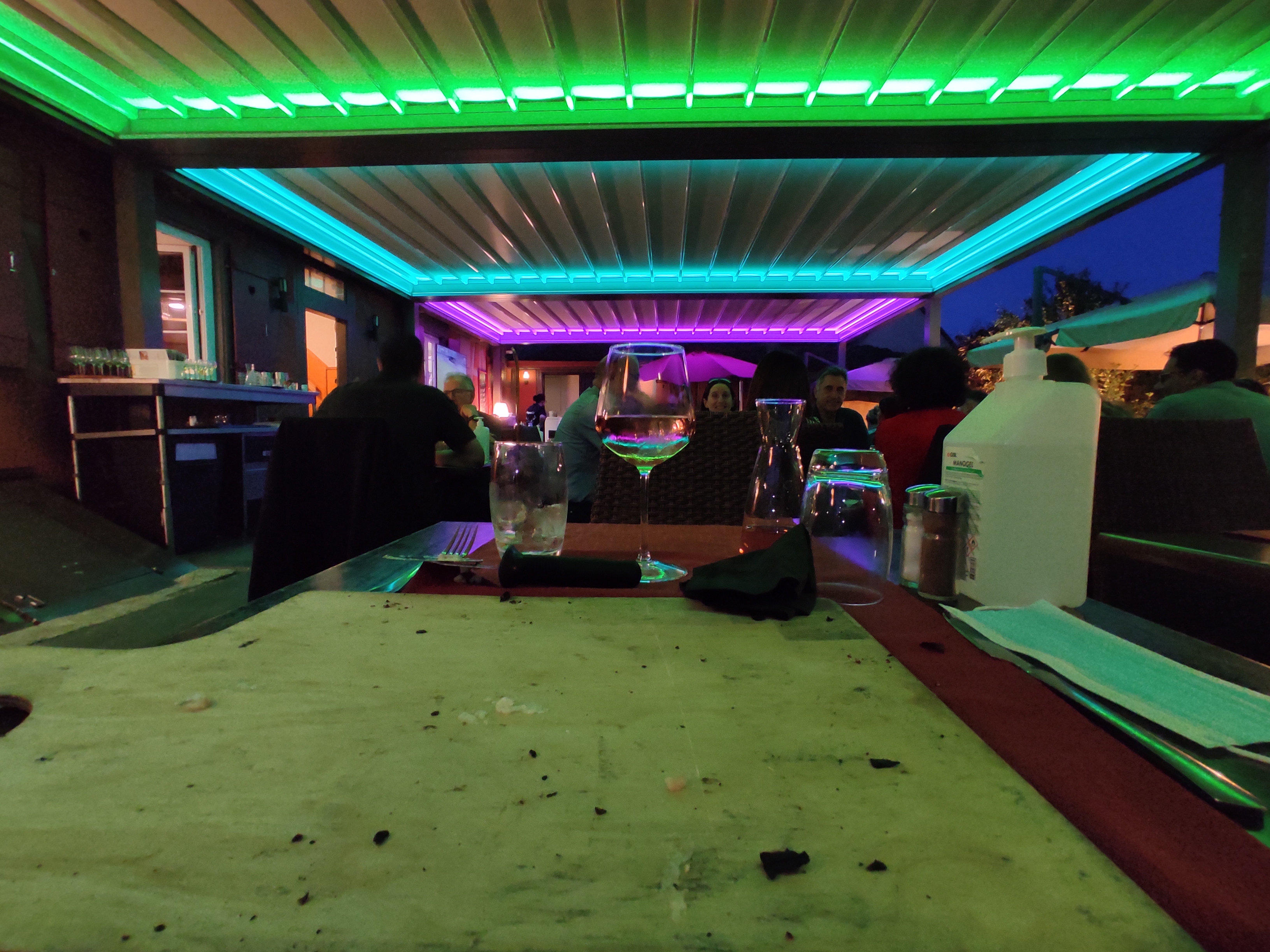 Même si les plats sont bon (malgré les légumes simplement cuits a l'eau), l'écran géant, pixelisé et trop lumineux, en plus de la musique électro et du bruit ambiant, la terrasse n'était simplement pas agréable.