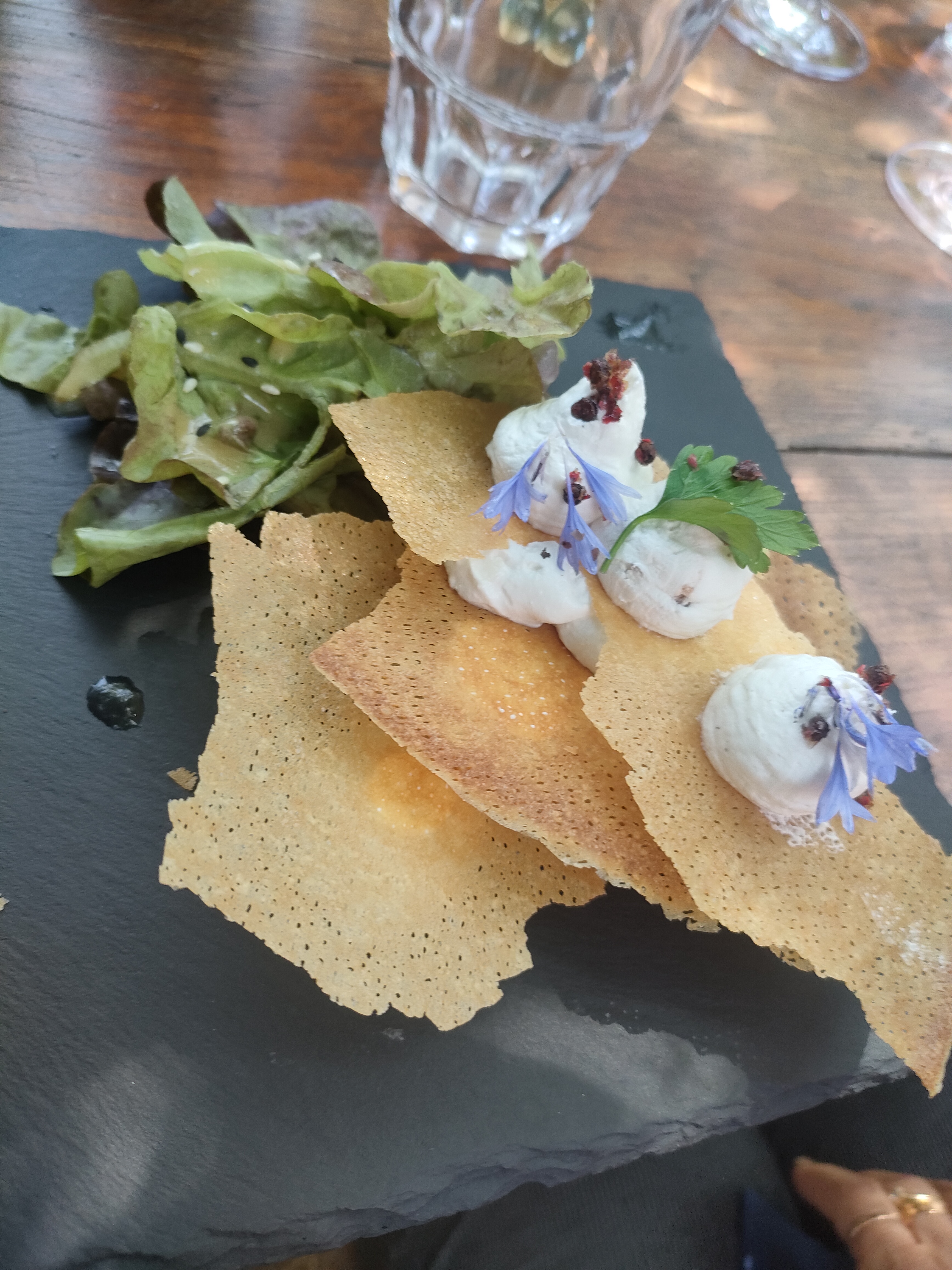 Un cadre en adéquation avec ĺe village de la couvertoirade. Si vous devez déjeuner sur place alors arrêtez vous à ce restaurant. J'y ai pris l'assiette végétarienne et je n'ai pas regretté car j'ai découvert de nouvelle saveurs par exemple une tarte miel et échalotes ( une pure merveille) le cookie lentilles et herbes huuuum . Cette assiette est savoureuse et copieuse je n'ai pas pu prendre de dessert. Il faut dire que je me suis aussi laissée tenter par Une mini dose d'aligot... mon compagnon quant à lui s'est régalé avec une grillade juste à point et parfaite. Ce qui ne gâche rien c'est que malgré le rush , l'équipe fut aux petits soins.