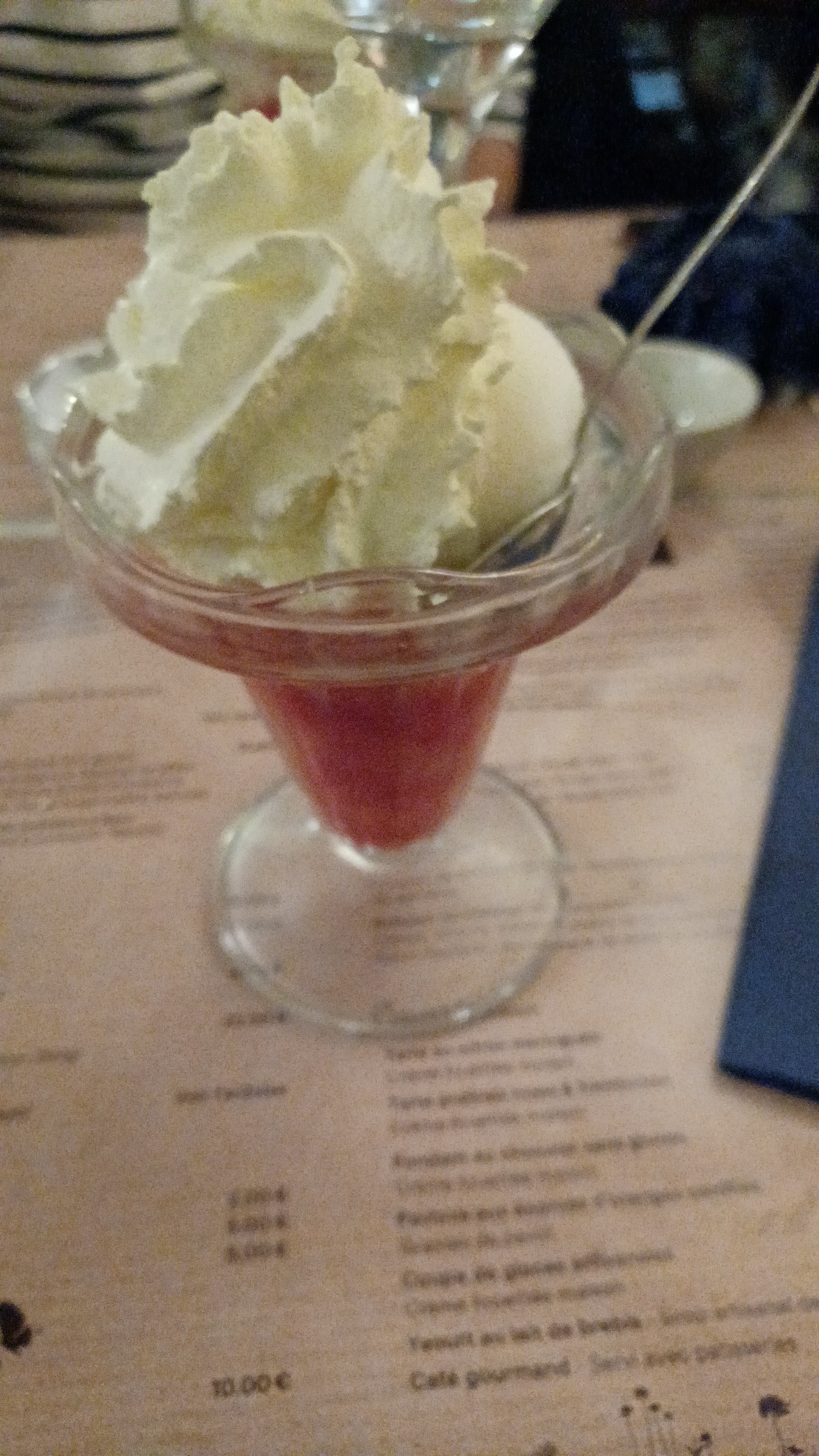 50 gr de viande avec frites maison (bonnes), 21 € !!!! Soit disant morceaux de gigots, cotellettes d agneau. En fait j ai eu l extrimité du gigot qui est très cartilagineux et une demi cotellette. Quand j ai tout trié il restait á peine 50 gr de viande. La carte des vins est réduite á sa plus simple ex pression ( connaisseur s abstenir). Pas de boules de glaces classiques, vanille, chocolat, .... Le vin blanc au verre n est pas servi frais. Mon épouse a aimé la truite et la tarte citron. Je déconseille.
