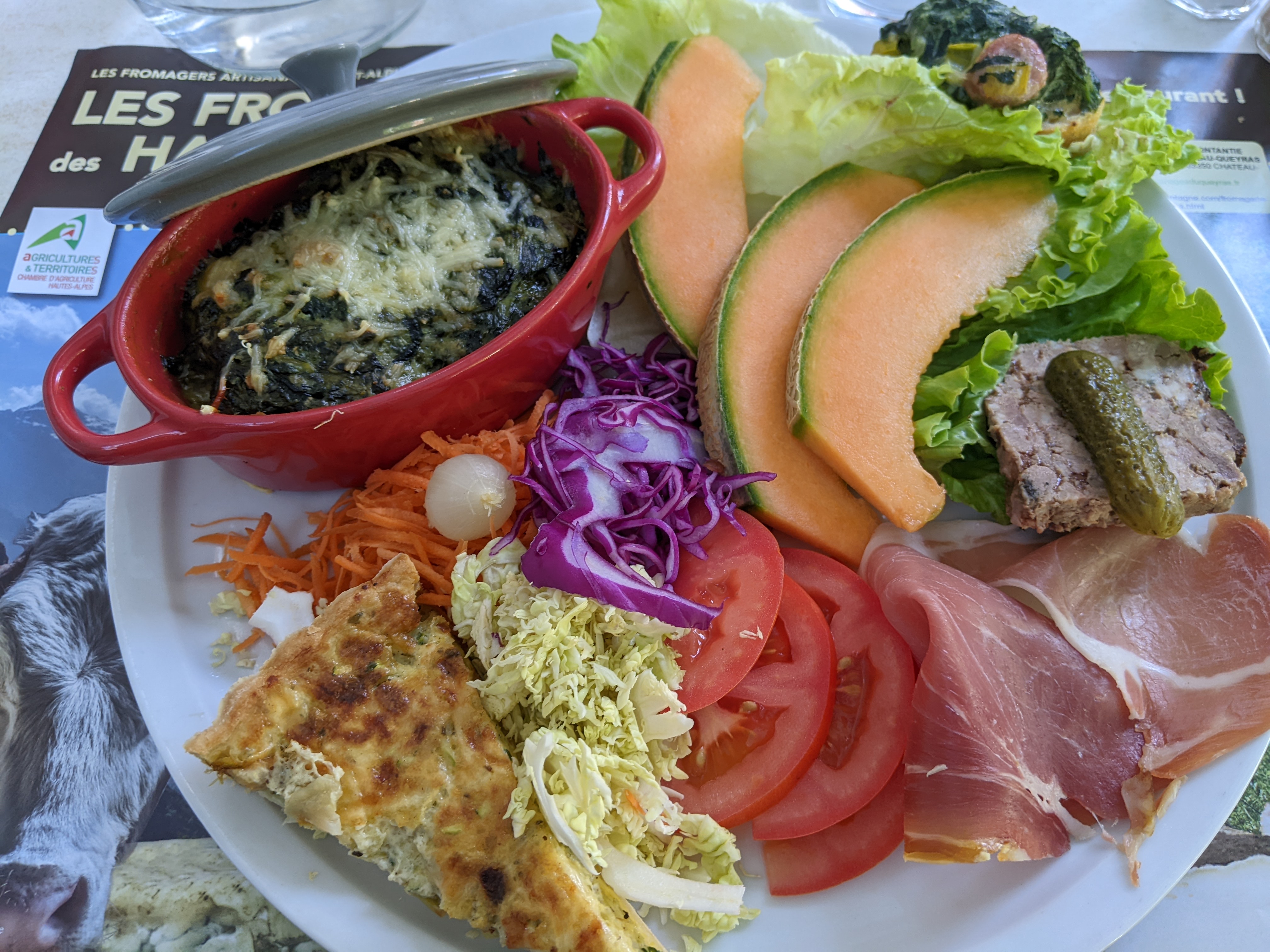 Pause déjeuner avant d'arriver sur Embrun. Peu de choix car sous forme de formules. Lapin aux olives, canard accompagnés de gratin dauphinois ou oreilles d'âne. Correct au niveau des prix mais belle terrasse à l'ombre et grand parking. Personnel agréable