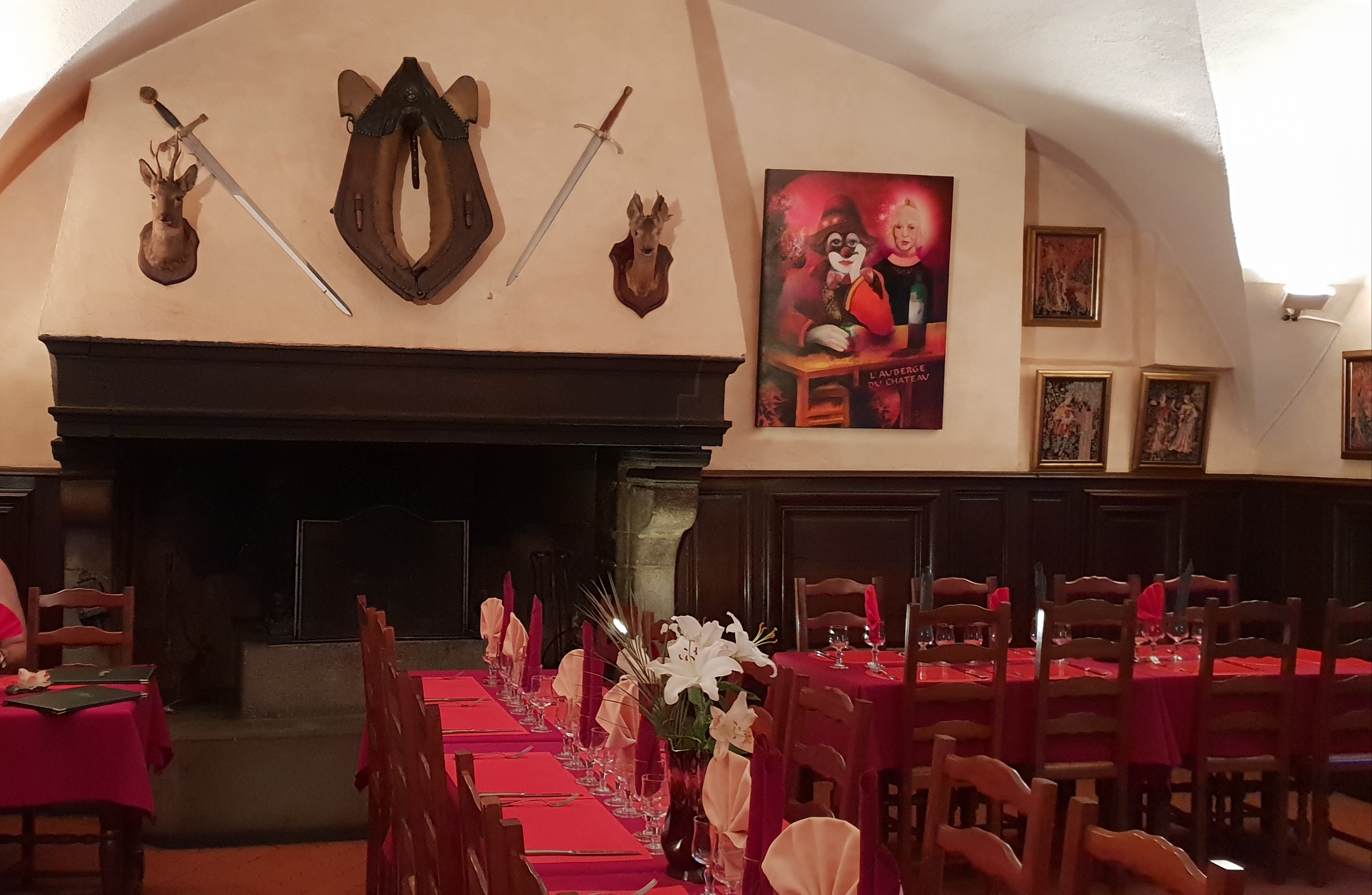 Très belle salle de restaurant dans le château. Nous avons été très bien reçu les menus variés. La restauratrice très agréable et accommodante. Nous recommandons cet établissement