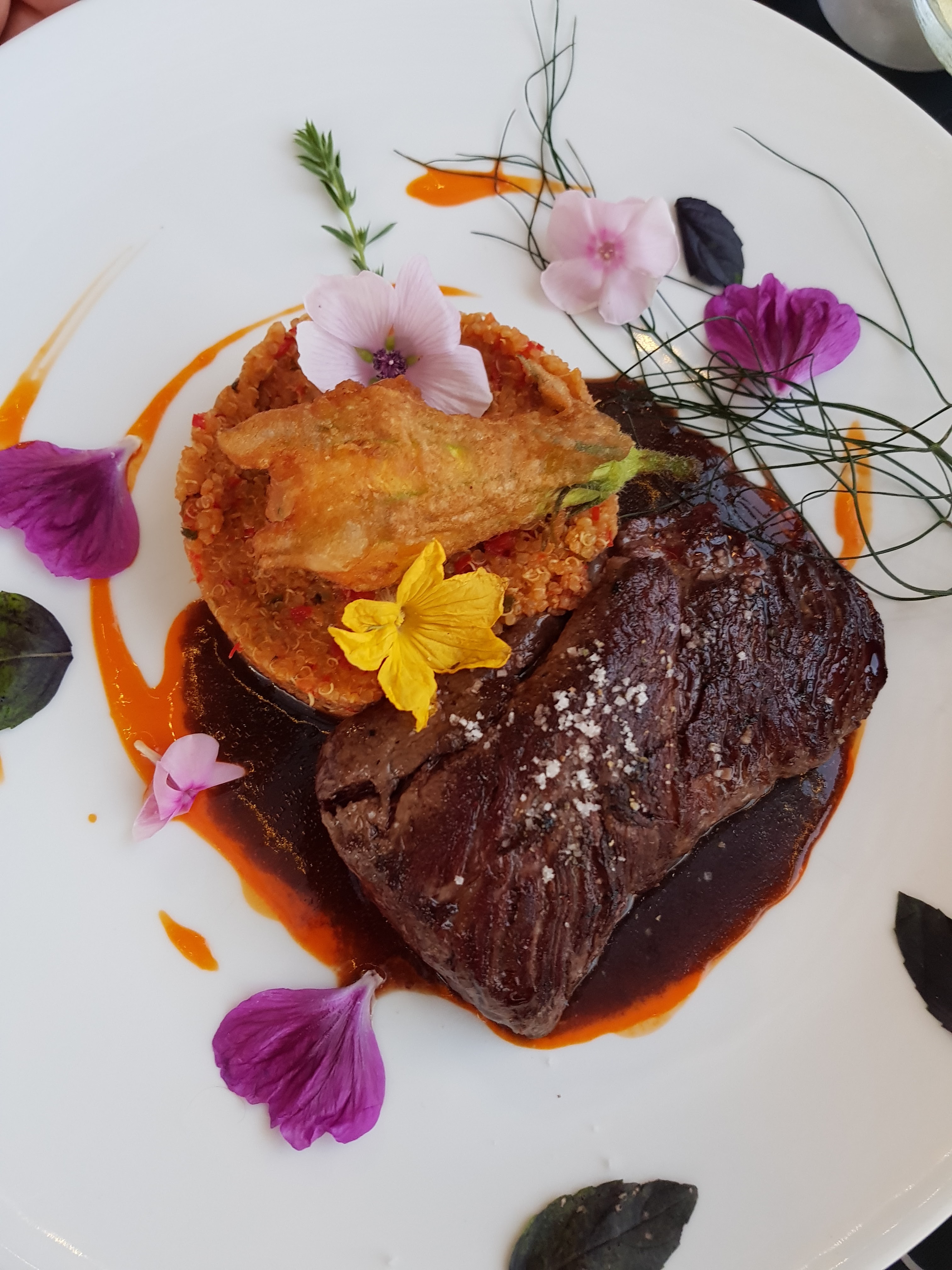 Succulent. On pensait que vu les photo on aurait faim en sortant. Tout le contraire. Les diverses fleurs sont excellent, les melanges sont sympa mais certaine saveur peut accentuer a mon gout attention. Avantage c est que la piece principale est mis en valeur, les fleurs font un travail remarquable pour le gout. La tarte citron revisité, pas de mot pour decrire la surprise positif sur la presentation surprenante revisitée. Mais encore une fois le citron manqué en bouche pour moi. Ma femme a apprécié justement ce côté subtil. Mais a trouvé qu en melangeant les textures le gouts se perdait. L amuse bouche en aperitif vaut vraiment qu on s y arrete. Excellent acceuil, plat expliquer. # Franchement allez y #. Et prenez le temps de deguster les saveurs, les melanges.