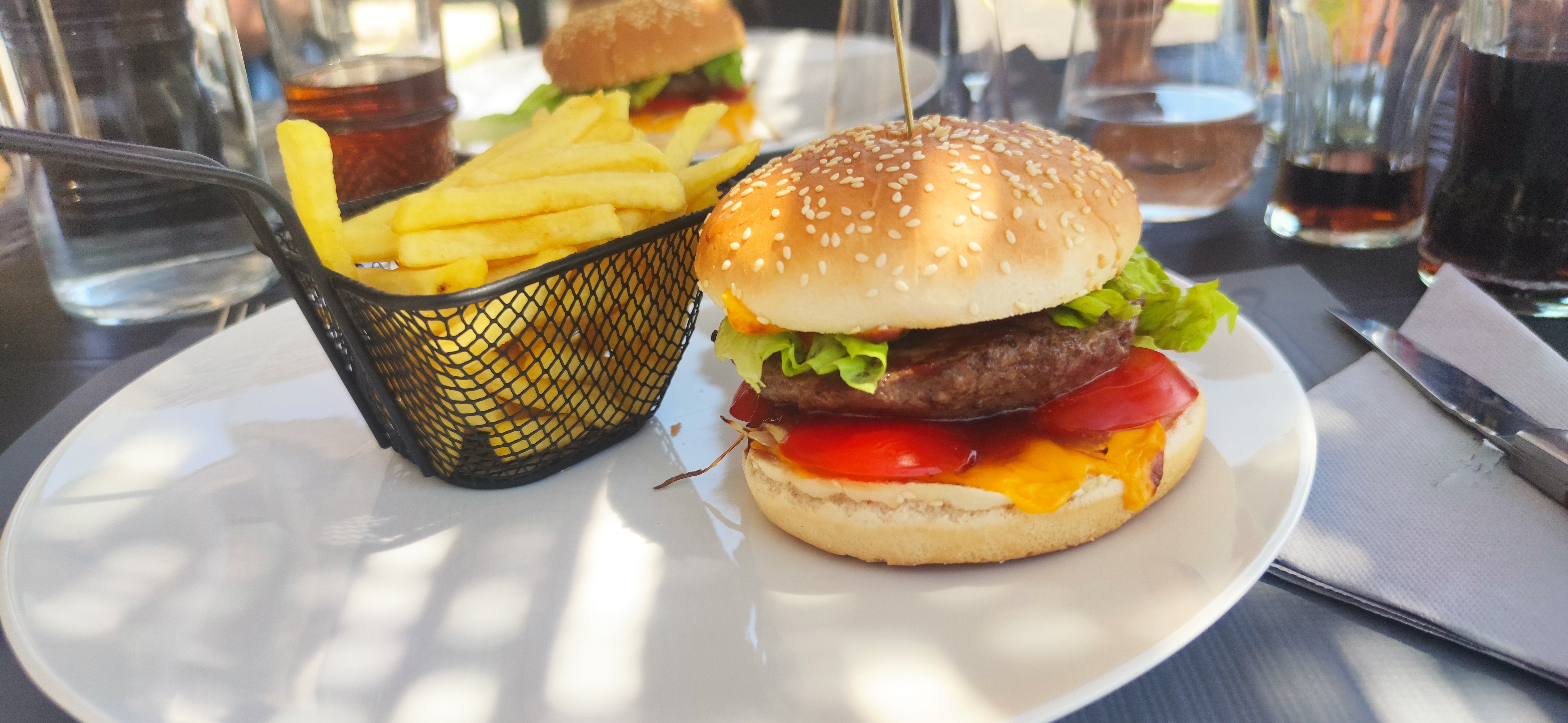 Hamburger basique avec un bon steak de 200g. Pour 15 euros le burger je m'attendais à des frites maison ! Bistronomique ?? Un peu déçu nous sommes venu exprès de Clermont-Ferrand