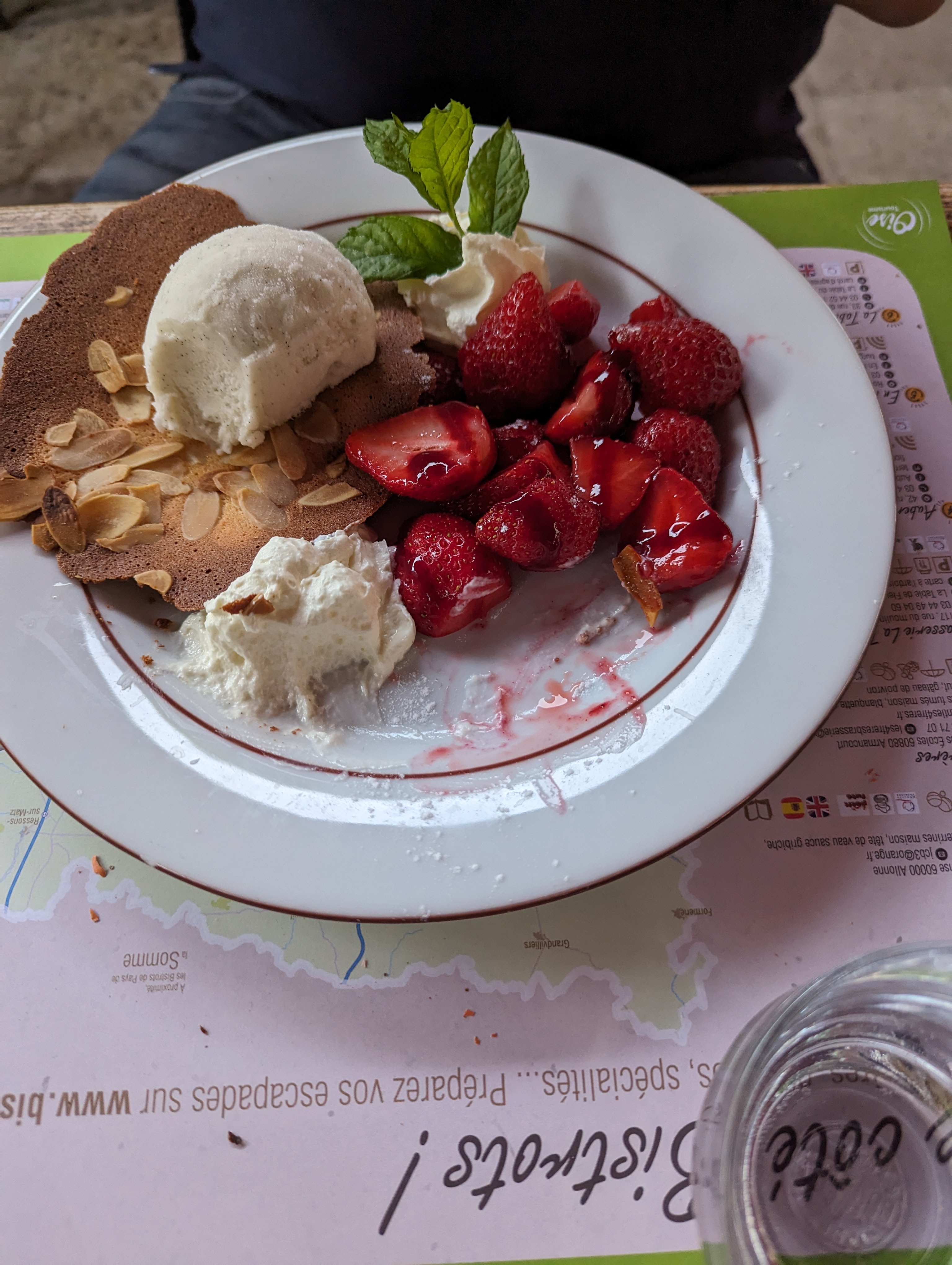 Nous avons rencontré des amis locaux qui vivent à proximité depuis plus de 20 ans et c'est l'un de leurs restaurants préférés. La nourriture et le service étaient fantastiques. C'était dimanche midi et il y avait beaucoup de monde donc un peu à l'étroit mais cela ajoutait à l'atmosphère fantastique. Le meilleur repas que nous avons eu en France.