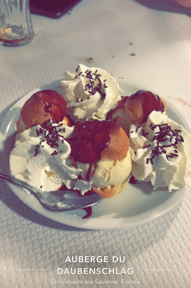 le repas était plutôt bon , un peu trop copieux pour moi .une seule sauce maison aurait été préférable plutôt que 6 ou 7 sauces du commerce .le cordon bleu à la crème est énorme , mais la encore , pas de sauce maison . le cadre et la serveuse agréable . un joli petit village alsacien accroché à la colline . point négatif , des rues étroites ou il est plutôt difficile de s'y garer .