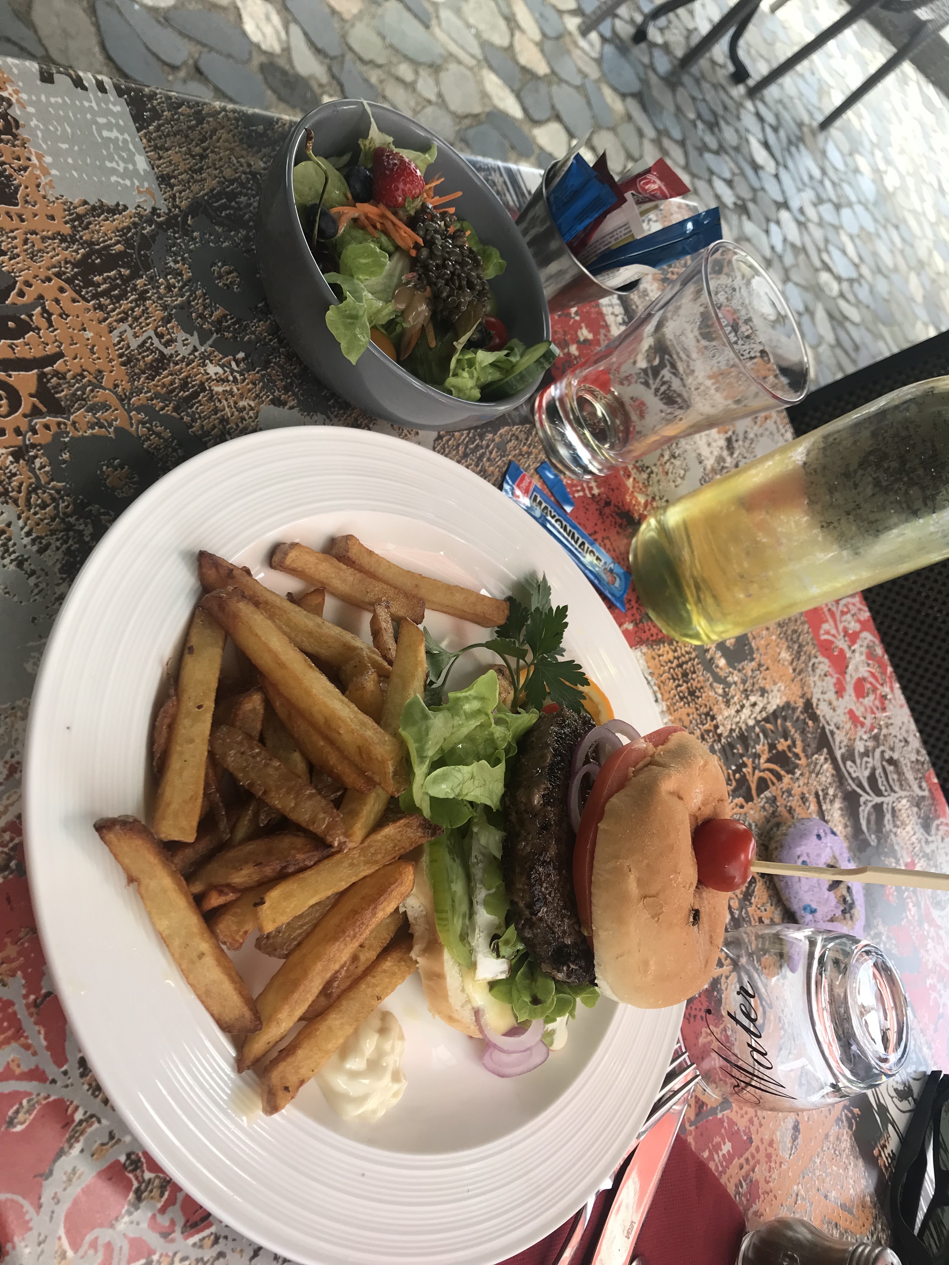 Bonne cuisine et cadre agréable ☺️ 🍔 Le burger était excellent accompagné de délicieuses frites maisons et d’une petite salade pour la fraîcheur 🥗 En revanche, grosse déception sur le dessert, un éclair vanille qui n’était pas totalement décongelé… Dommage 😞