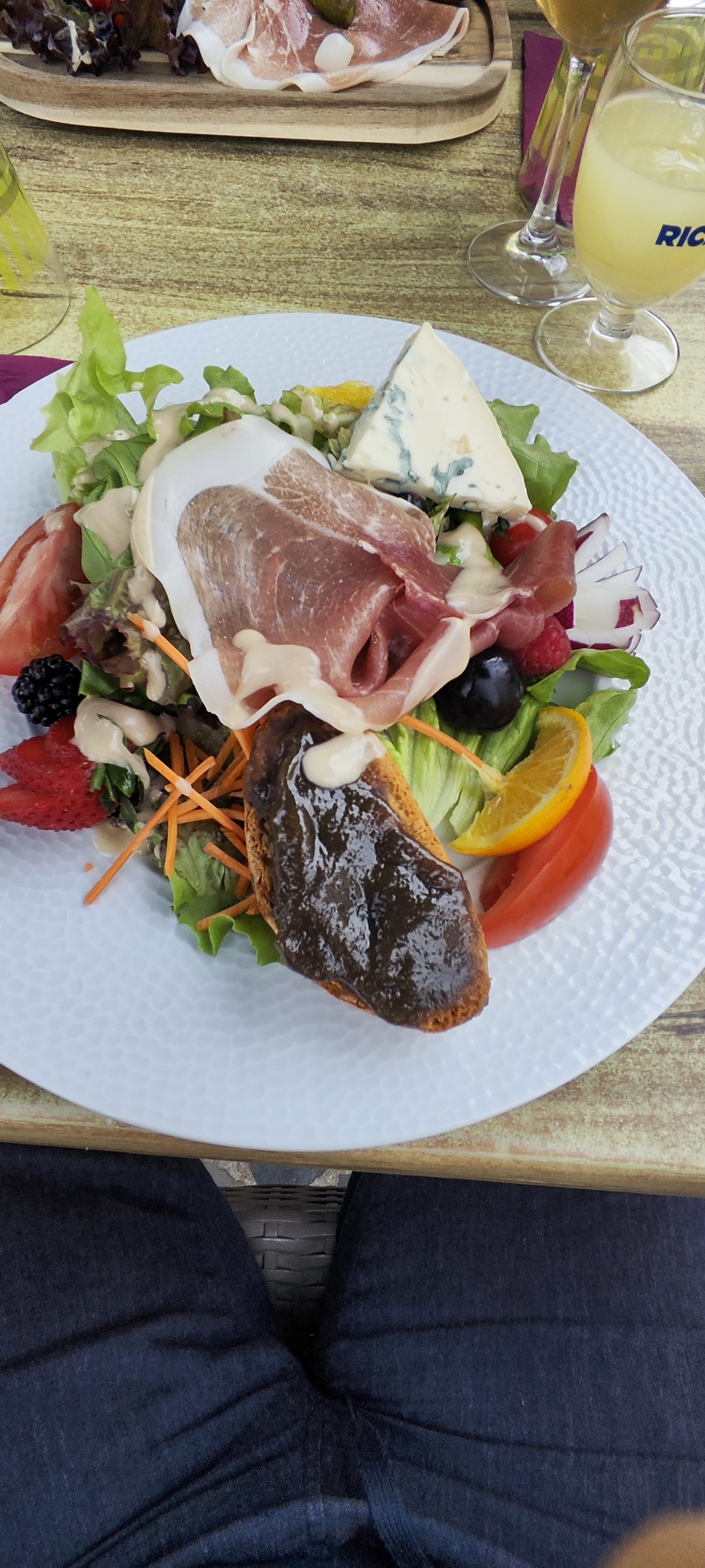 Restaurant agréable , avec terrasse ombragée pour la plupart des tables, bruschettas (dont une végé) délicieuses ,accompagnées d'une petite salade originale , le vin de Boudes choisi a été également très apprécié ! Un très bon moment !