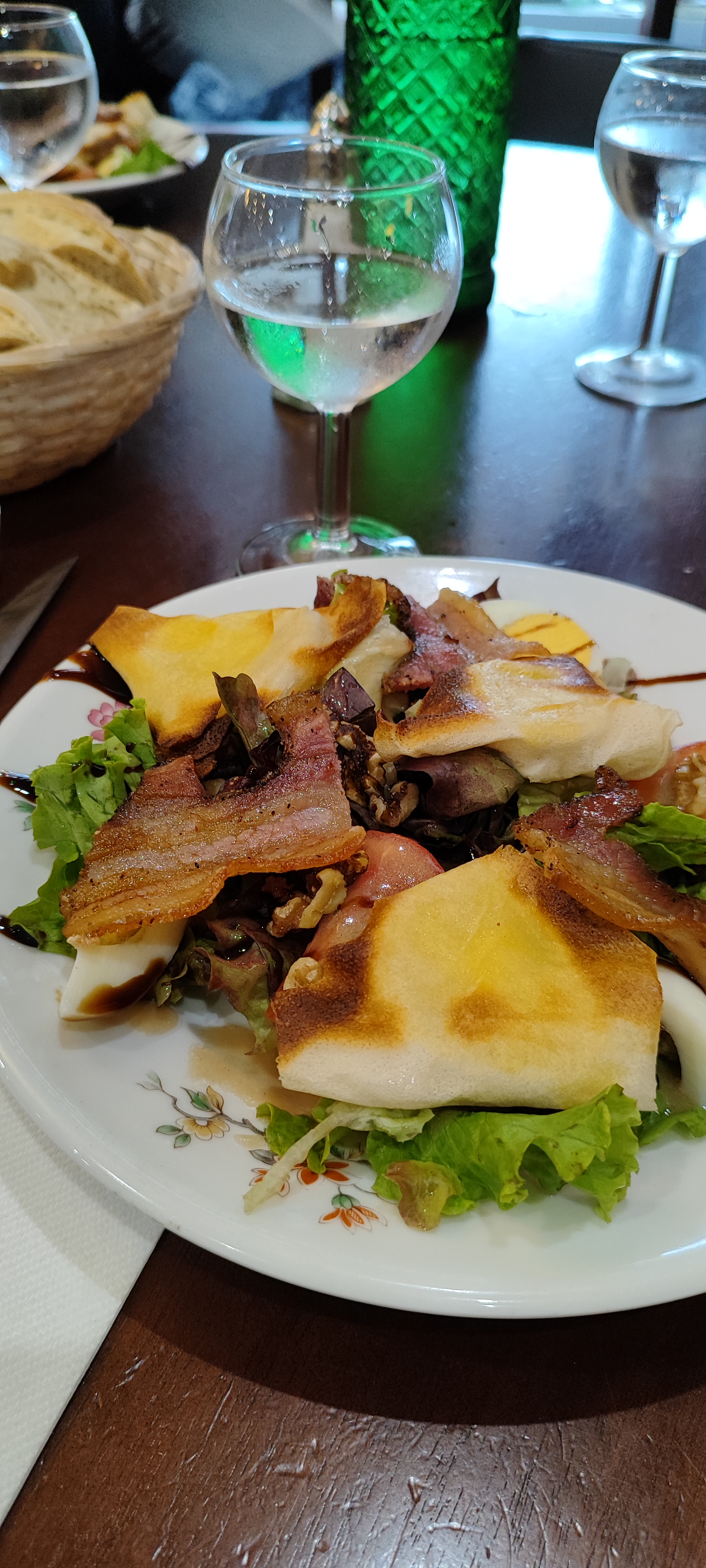 Accueil adorable. Salade maxi généreuse. Vin excellent . Très beau choix de l Œnologue. Idem Sangria. Nous recommandons. Merci. Nous avons passé une excellente soirée.
