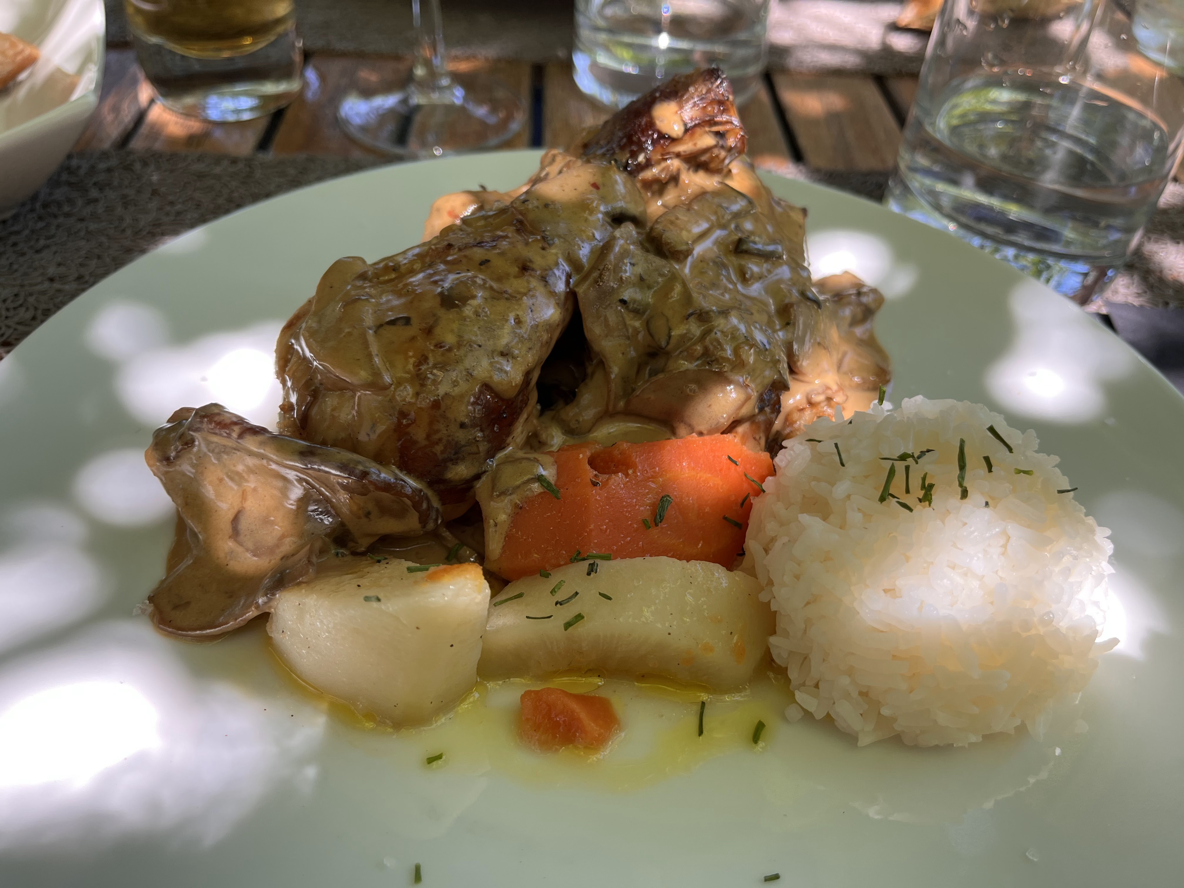 En séjournant au camping voisin, nous avons décidé d'essayer ce restaurant. Nous sommes ravis de l'avoir fait, la nourriture était excellente et à un prix raisonnable à 29 € pour un repas de trois plats. Le poulet que j'avais était fabuleusement tendre et tombait des os. Nous avons apprécié tout ce que nous avions et le service était bon. Je le recommande absolument et si jamais je repassais par ici, j'appellerais pour le déjeuner car j'adorerais m'asseoir dehors au bord de la rivière. Excellent.
