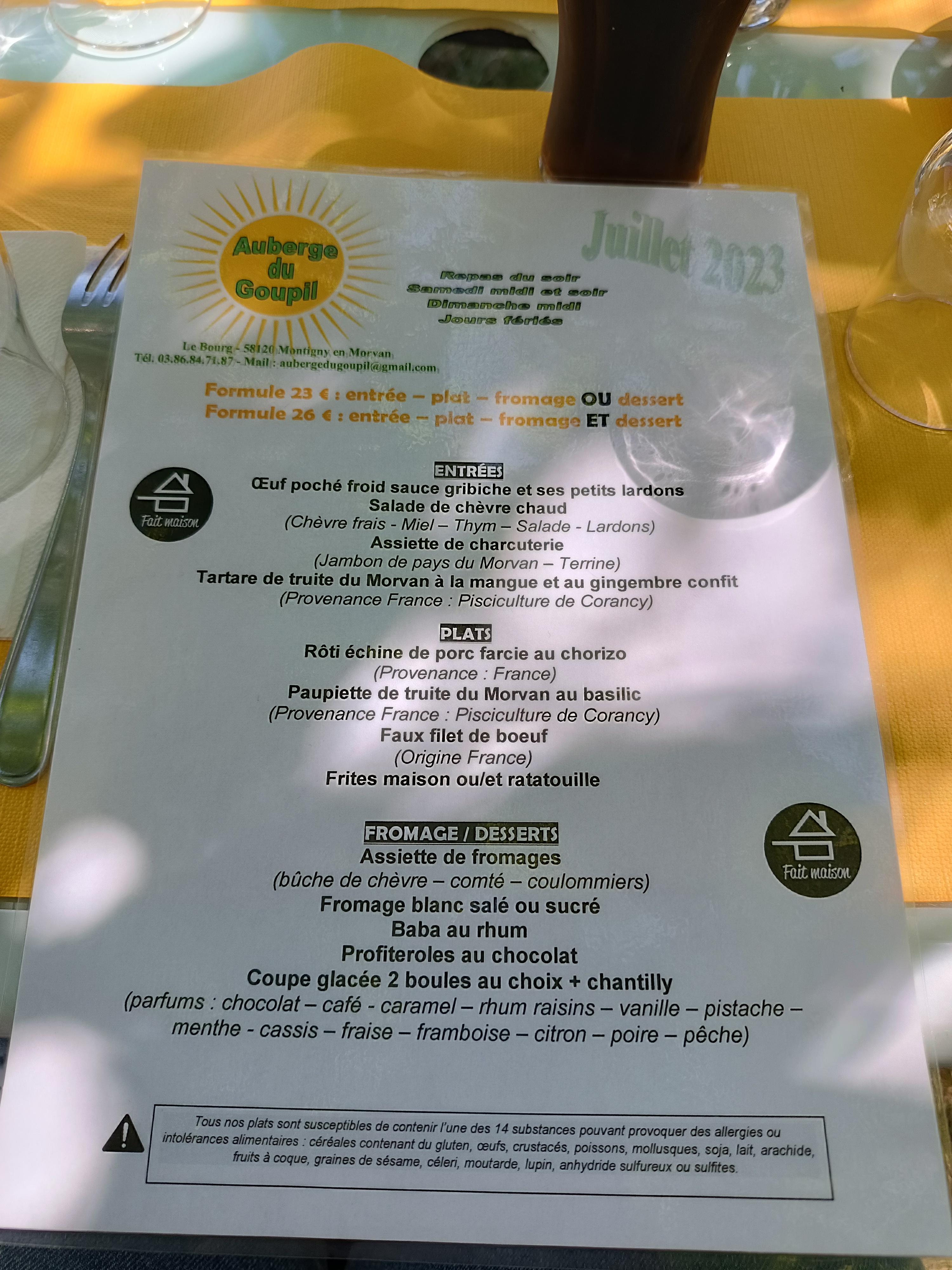 Endroit magique de part sa localisation mais également au travers de Pierre, le maître des lieux. Non seulement on y mange au top avec un maximum de produits ultras locaux (boeuf élevé à 200m...) Mais en plus l'ambiance est toujours très familiale lorsqu'elle n'est pas musicale. En effet, une vaste prog concert y est distillée. En bref allez voir Pierre dans son Goupil, un lieu incontournable Morvan.
