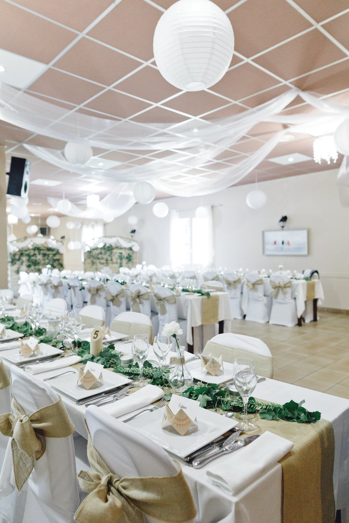 Journée de mariage du 28 sept 2013 Tout d' abord repas très apprécié des convives : excellent foie gras, puis filet de sandre, pintade moelleuse, fromage et pièce montée. Le personnel de service prévenant et efficace s' est adapté aux temps d' animation. Ensuite buffet dansant copieux et soirée festive avec brioche gigantesque !!!. Un excellent souvenir dans la mémoire de chacun. A noter un excellent rapport qualité/prix. L' hébergement possible sur place a été un complément très sécurisant. Le rafraîchissement des peintures donnera certainement une note plus élégante aux lieux . Encore tous nos remerciements car ces prestations ont contribué à faire de cette journée , un enchantement !