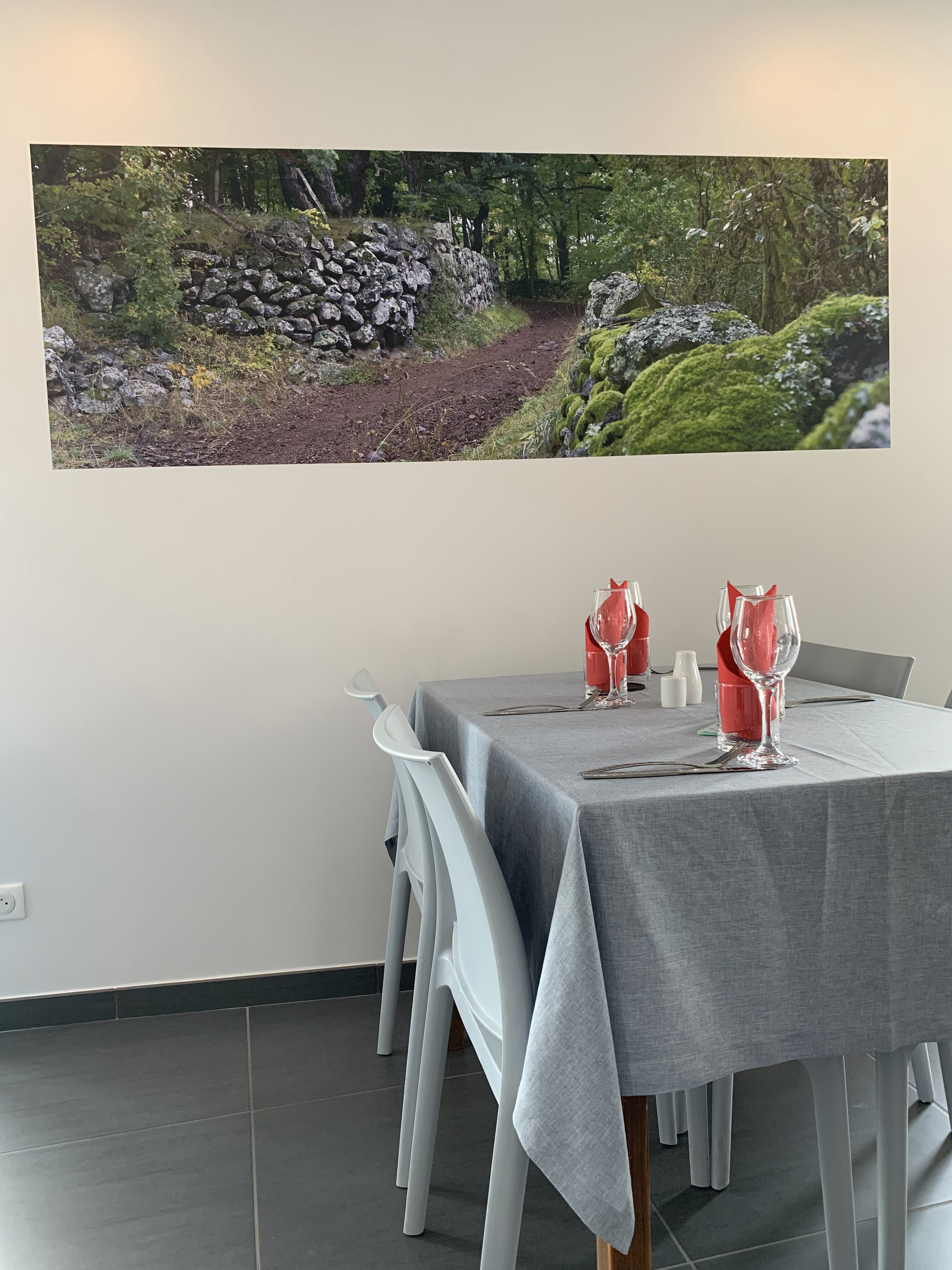 Nous sommes passés au restaurant qui avait une affiche RESTAURANT… nous marchions le chemin mon fils et moi, faisait froid et humide… nous avons considéré manger mais dès que nous sommes entrés, nous avons été pressé de prendre une décision… menu midi à 22€, donc nous avons demandé si nous pouvions partager… reponse: absolument pas… soit vous mangez, soit vous prenez viandes froides et pain et dehors!!!! Manque de bienveillance, désagréable…nous avons quitté mais il n’y a tien avant St Privat…