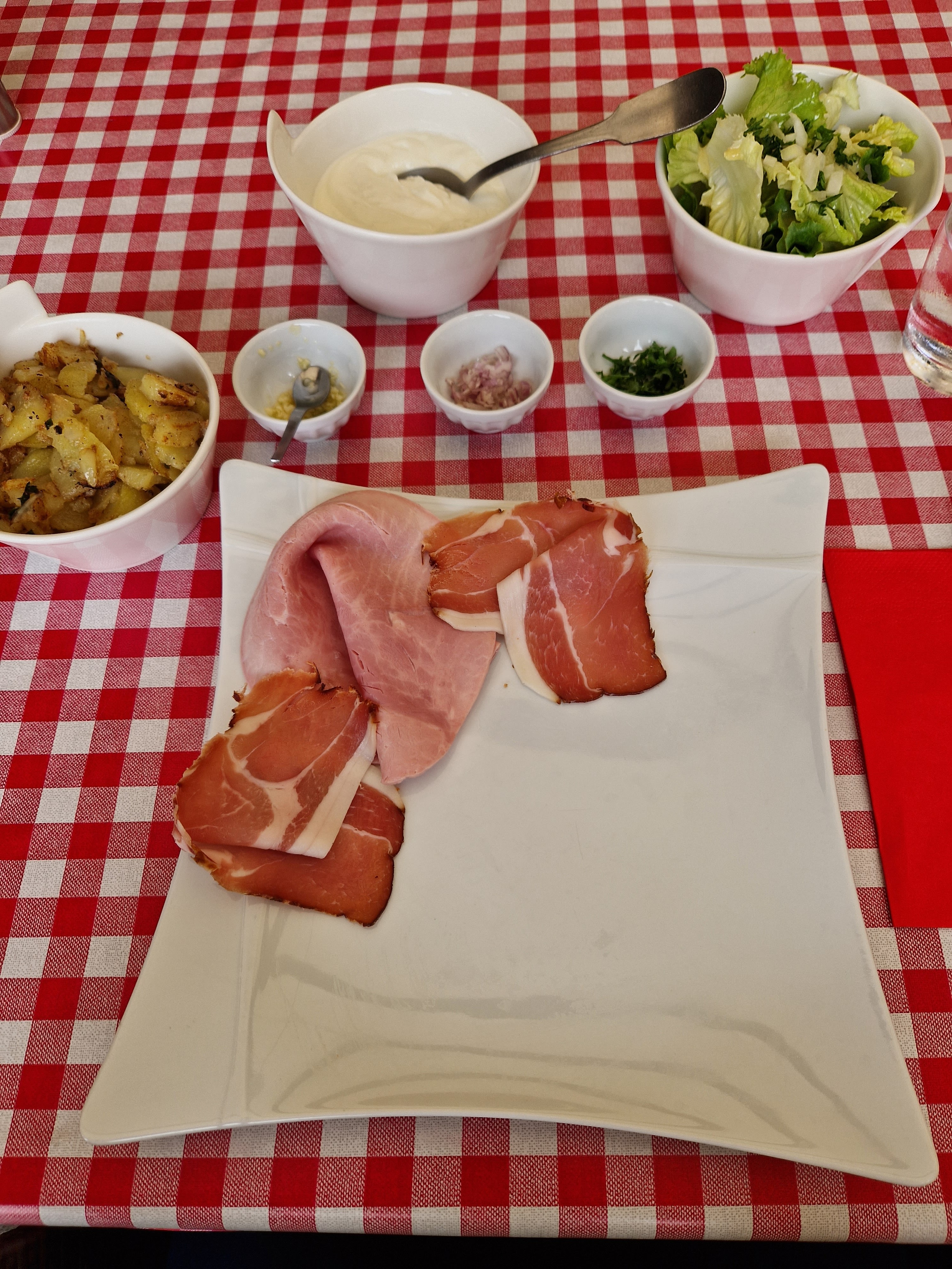 Rien de special, la salade etait a base de conserves , seule le petit peu de menthe la ravivait. Pour moi , c'est de l'indus . Les röstis baignaient dans l'huile. Assez decevant .
