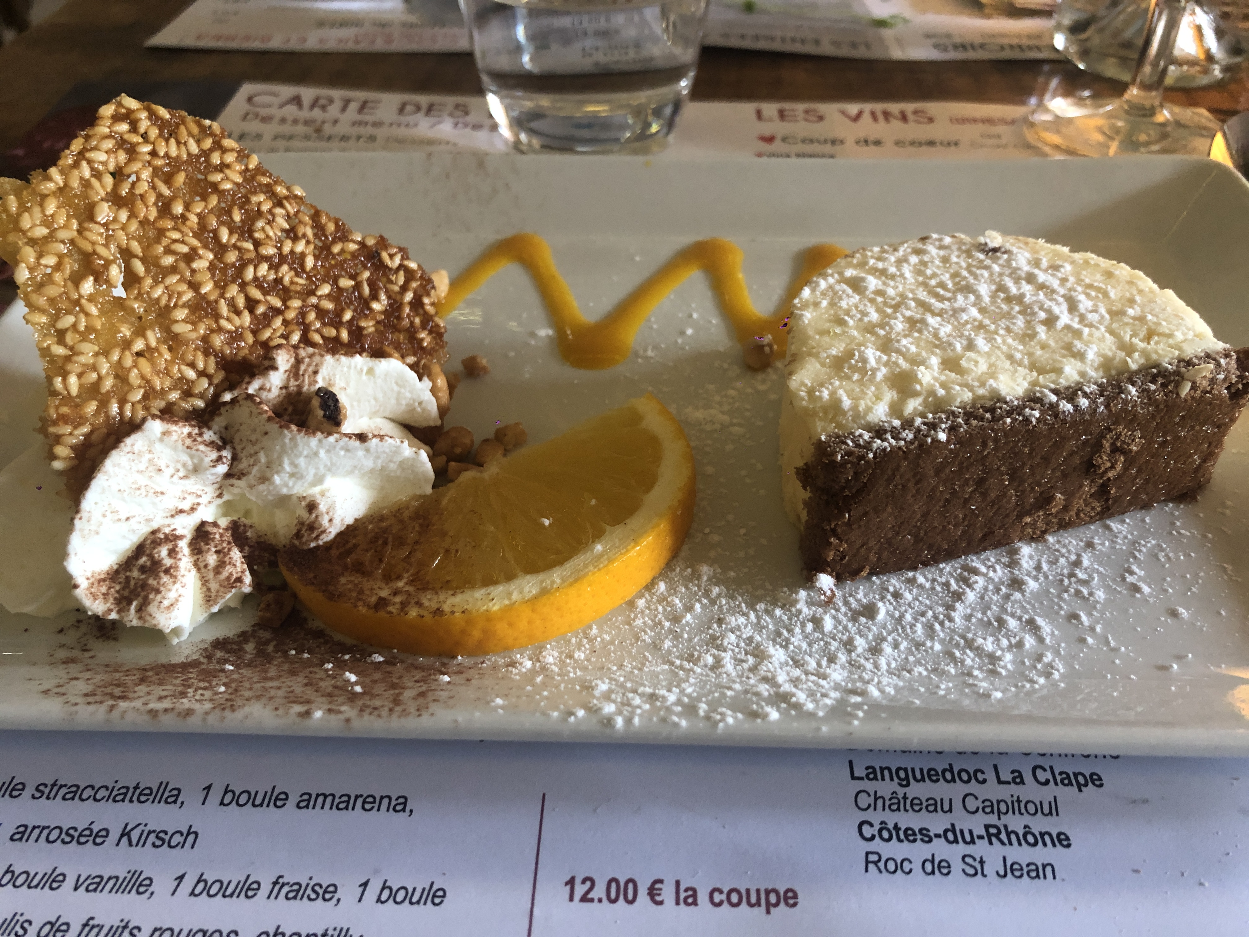 Bon cadre et service très bien et rapide mais des desserts qui ne nous en pas convaincus (un bon cheesecake mais avec du caramel coupé à l'eau et un tiramissu sans goût).