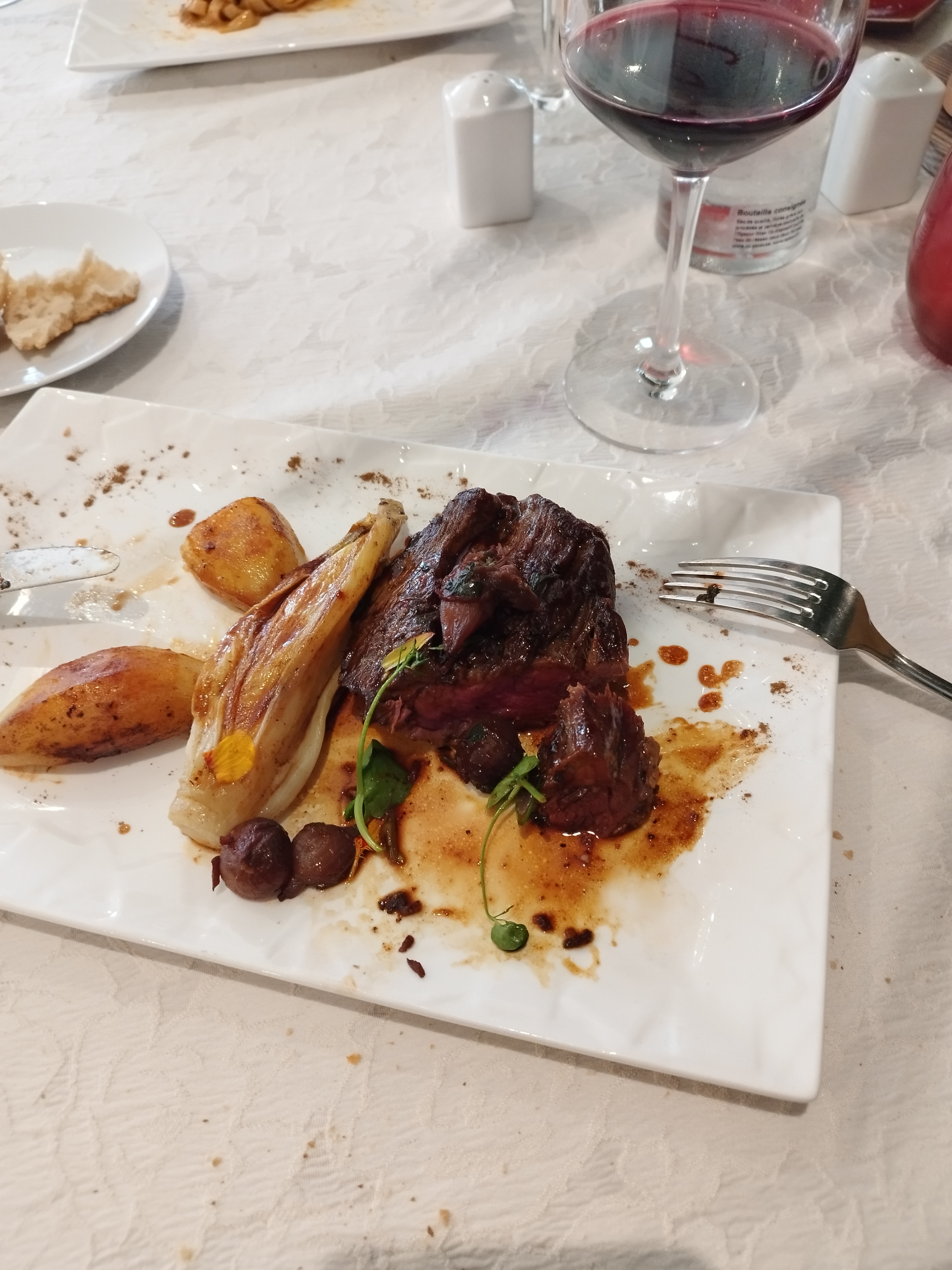 Son cadre magnifique ne nous fait pas oublier un menu décevant. Dans un cadre de toute splendeur, pour un repas à 48€ sans l'apéritif, les vins et le café : Mise embouche :(Excellent) Entrée : (Excellent) Plat : (Poulet trop sec et cannellonis avec un fort gout de fromage bleu!!!!) Fromage : normal Dessert : tarte au mascarpone (le mascarpone avait du tourné ???) Je trouve très décevant le menu qui n'a pas été rattrapé par le service, sympathique mais trop long. Ne conseille pas.