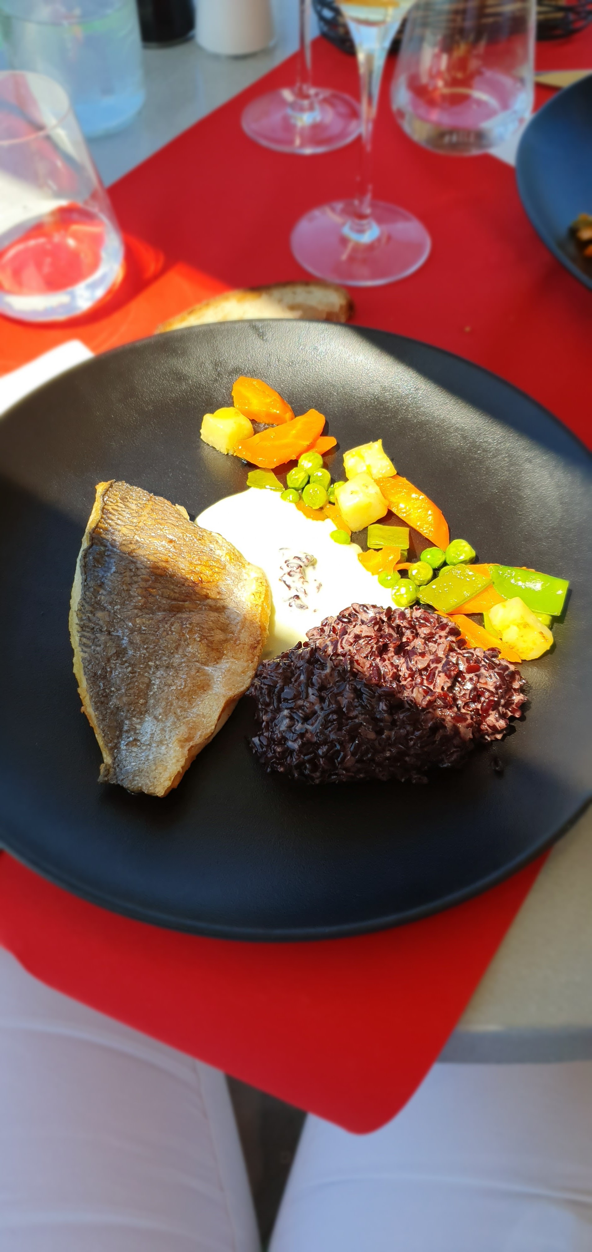 Filet de perche top. Dommage, la pluie a empêché le dressage de la terrasse les pieds dans l'eau.