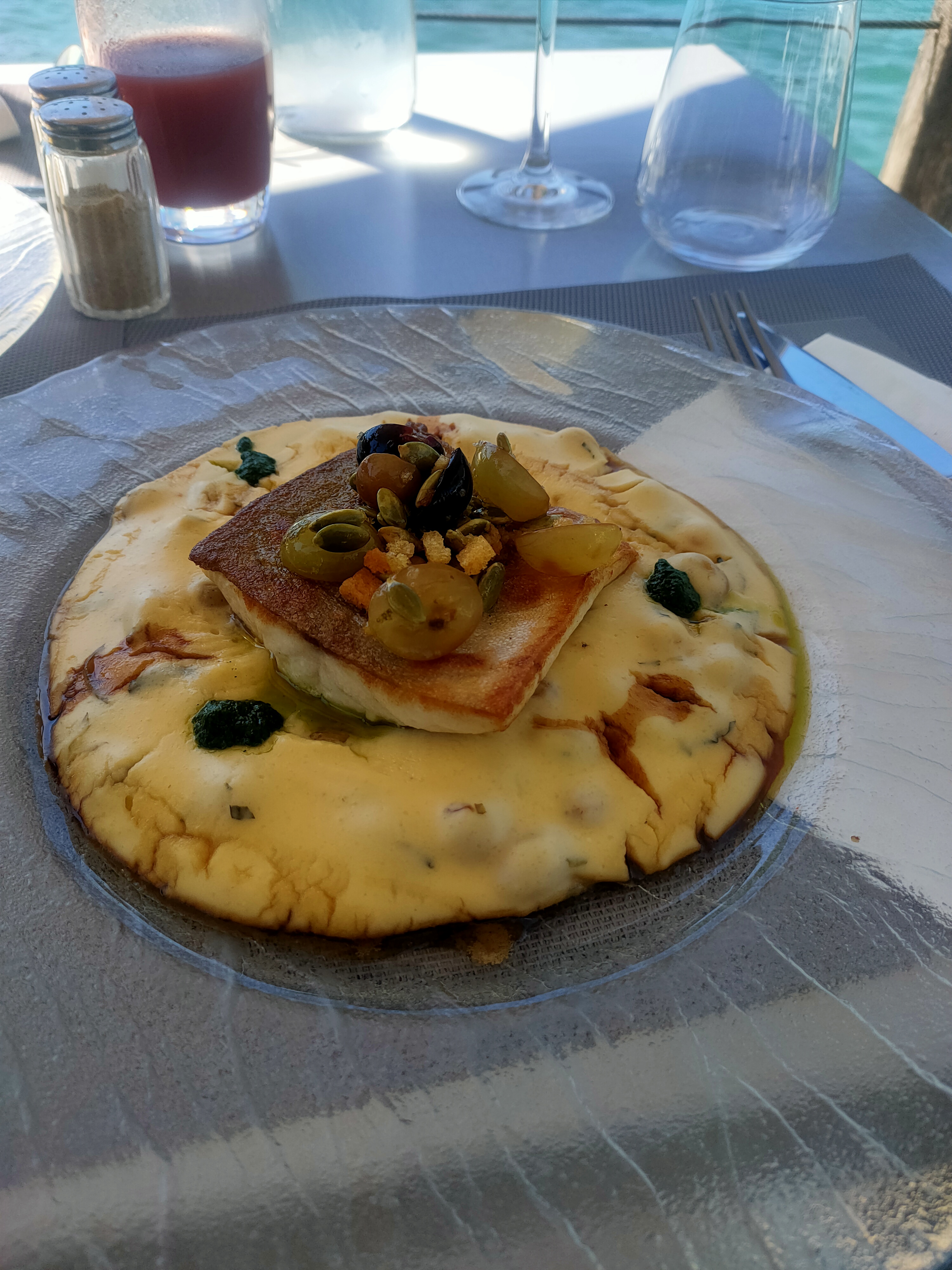 Un service poussif, 90 mn à attendre avec une bouteille en plein soleil dans l'attente d'une place a l'ombre sur l'embarcadère au lieu des 30 mn annoncees et ca finira en plein soleil alors que d'autres arrivent et sont placés convenablement. La commande forcée alors qu'on demande à changer de place on essaye de vous faire de l'ombre. Des prix de gastro surfait par rapport à l'assiette. Le service est aimable mais....
