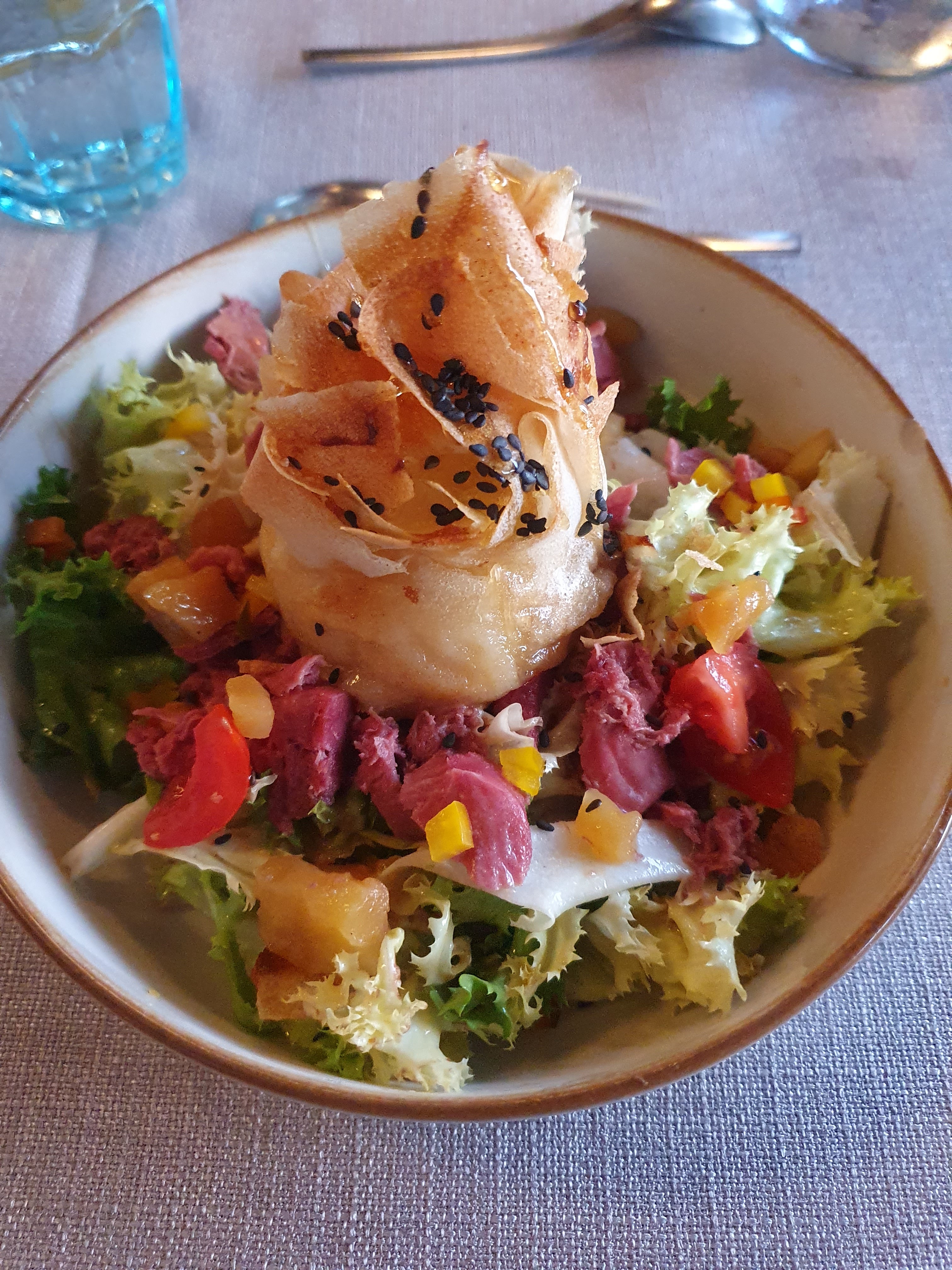 Bravo, cette carte est au top on sent qu il y a des professionnels en cuisine. Frais, copieux et inédit mais quel changement. Félicitations aussi à l'équipe au service qui malgré la chaleur adopte une attitude très pro. Je recommande à fond