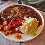 Malgré le cadre et le personnel agréable l'expérience culinaire n'est pas exceptionnelle Entrecôte avec beaucoup de morceaux durs, la sauce sans plus Purée de pommes de terre conssistence trop sèche et aucun goût Mi cuit, cuit au milieu cuisson micro onde